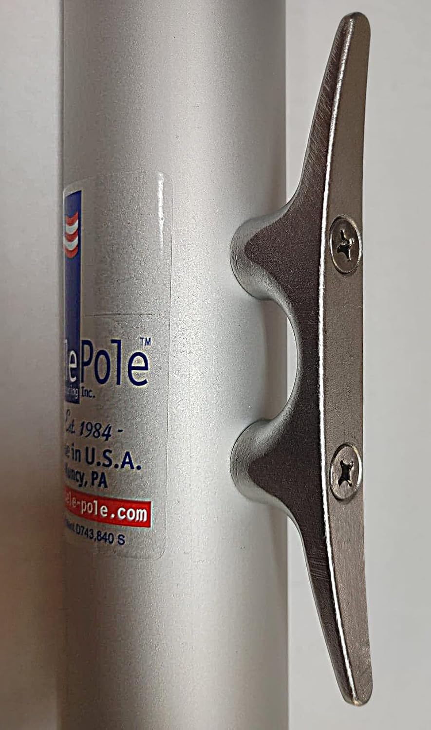- The 16' Classic flagpole includes: A 3" Stainless steel ball (ball color will be silver or gold, depending on in-stock availability), an extra thick custom PVC ground sleeve, a 1.38" aluminum rope pulley and 6" cast aluminum cleat, a thick solid braided nylon rope, 4 rust proof stainless steel clips, our custom push button tool, and installation instructions with hardware