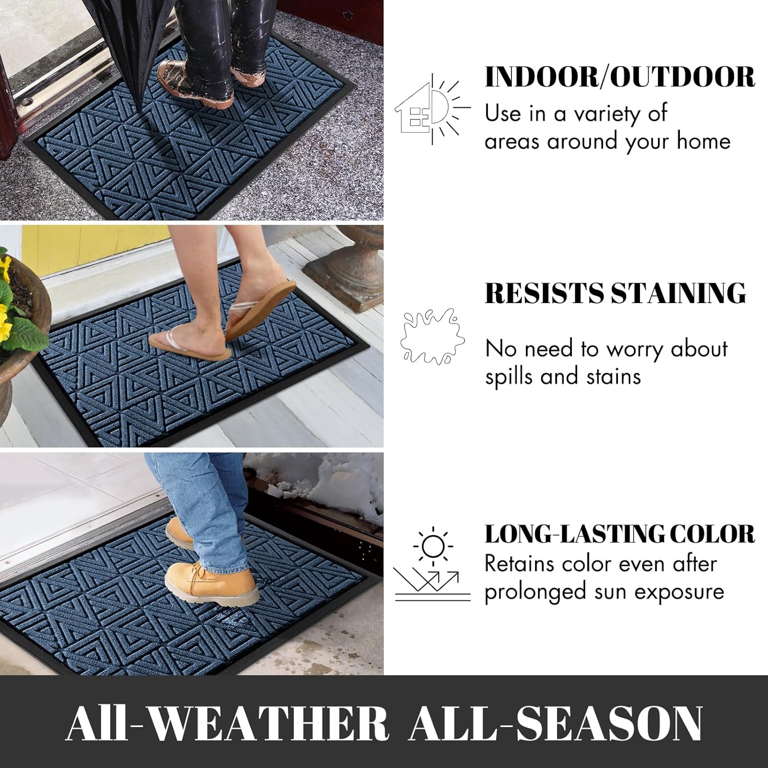 Yimobra Outdoor Mats for Front Door 29.5x17, Stops Mud & Dirt at Entrance, Fits Garage & Patio, All-Weather Waterproof Non Slip Outdoor Indoor Welcome Mat, Blue