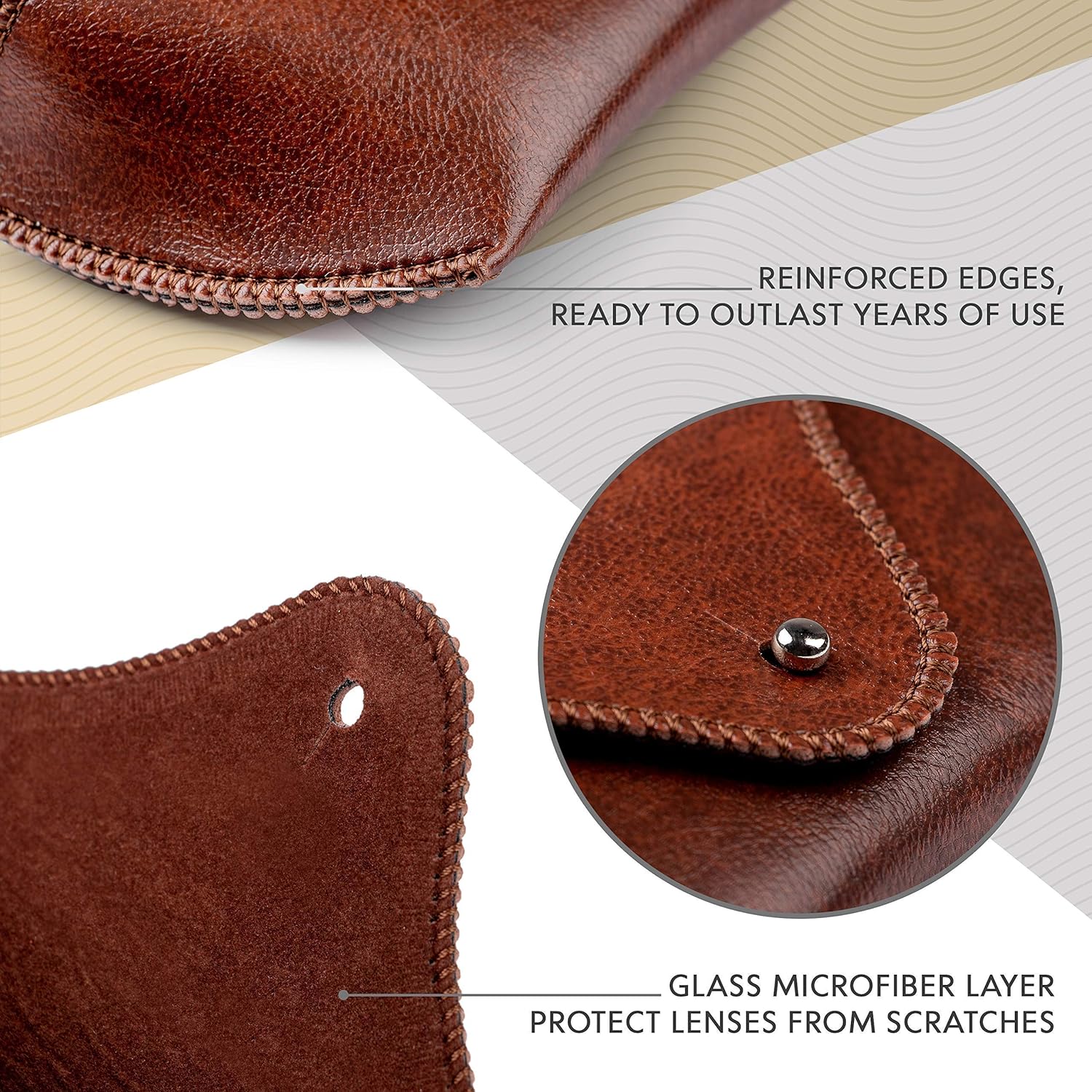 Leather Sunglass Case, Brown, Medium, Glasses Case, Big Sunglasses Cases For Men Women, Anti-scratch, Anti-press, Classic, Unisex