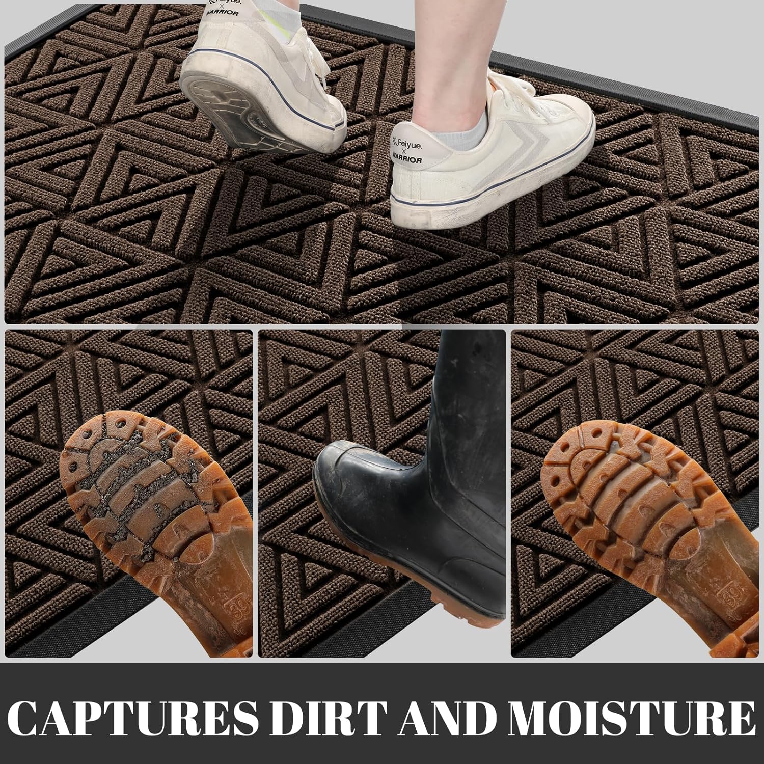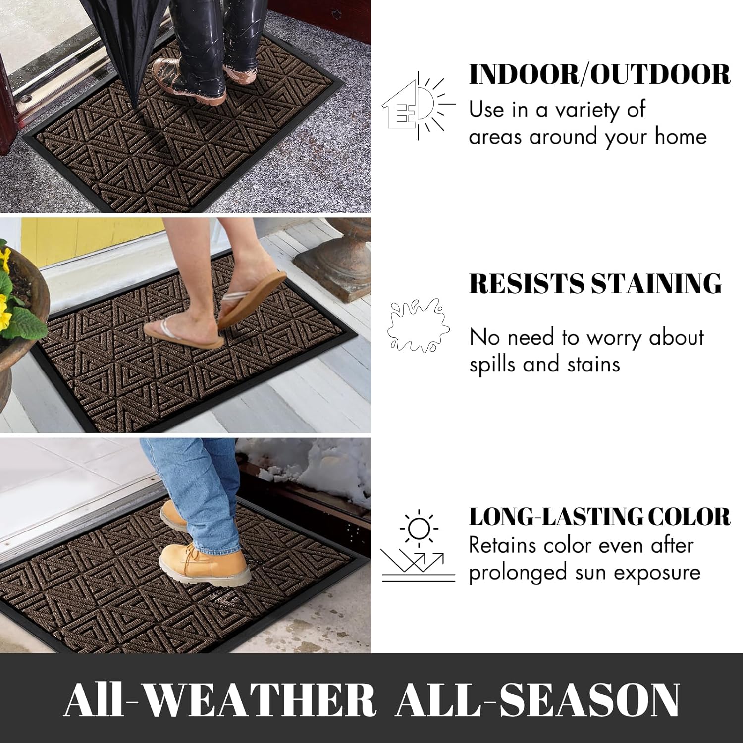 Yimobra Large Door Mat 36x24, All-Weather Waterproof Non-Slip Welcome Matt Outdoor, Heavy Duty Non Slip Doormat for Entryway for Patio and Garage Indoor, Easy Clean, Brown