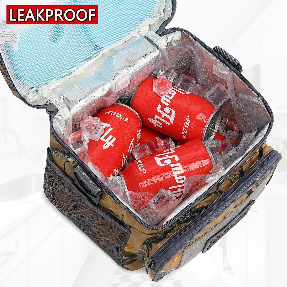 FlowFLy Lunch Bag, Insulated Cooler, Thermal Lunch Box Tote with MOLLE/PALS Webbing, Adjustable Padded Shoulder Strap, for Tactical Men Women Adults and Boys Girls Kids (Maple Leaves Camo, Medium)