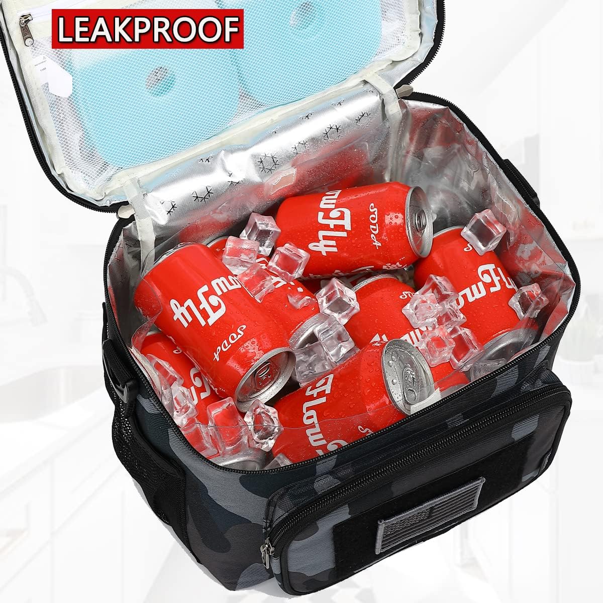 FlowFly Lunch Bag, Insulated Cooler, Thermal Lunch Box Tote with MOLLE/PALS Webbing, Adjustable Padded Shoulder Strap, for Tactical Men Women Adults and Boys Girls Kids (Black#Camo, Large)