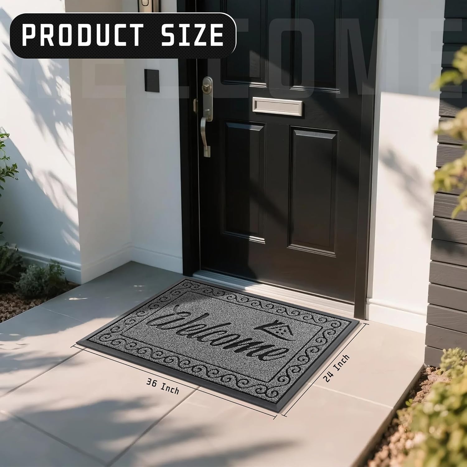 Yimobra Welcome Mat Outdoor Indoor, Waterproof Heavy Duty Front Door Mat Outside Entrance, Extra Sturdy Non-Slip Doormat, Low Profile, Dirt Trapping, 36x24 Inches, Black Gray