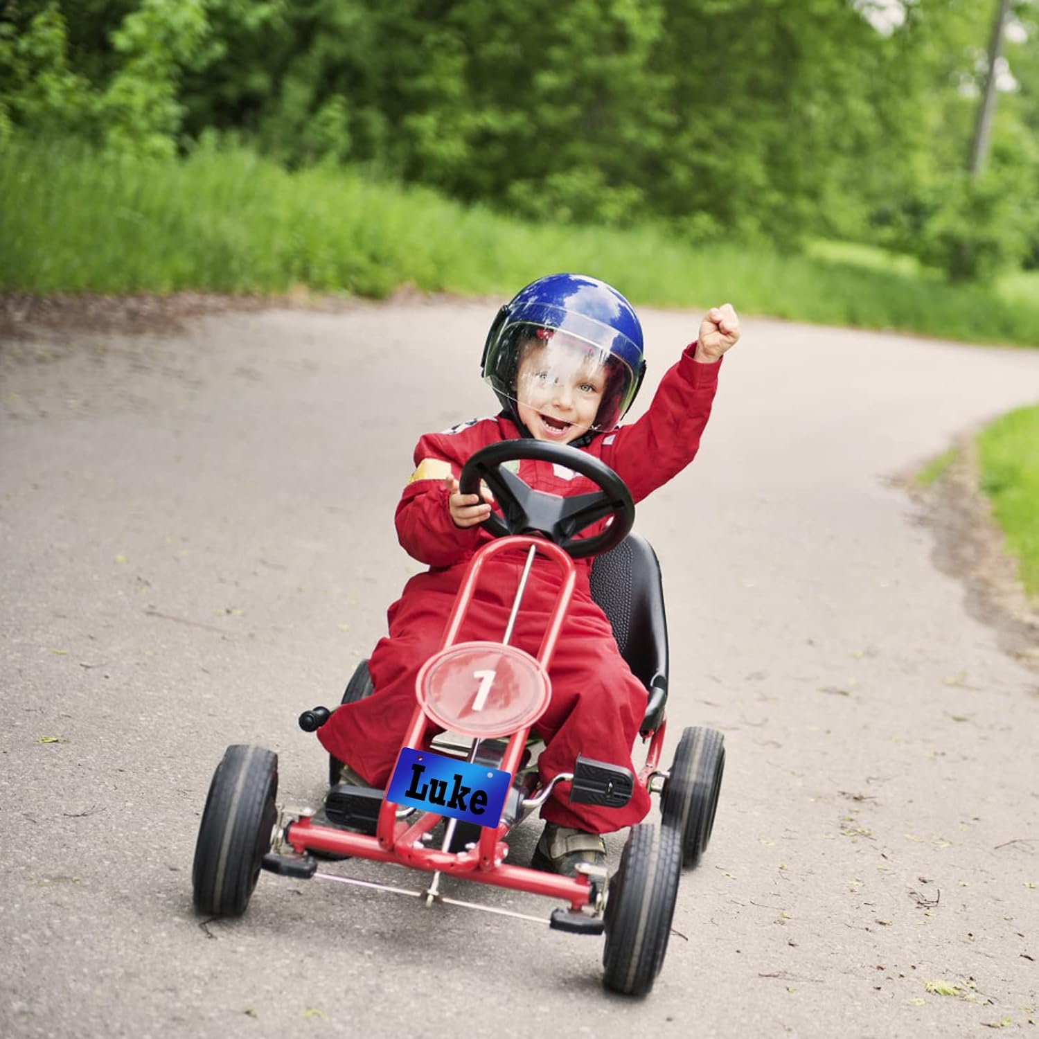 - 🚲EASY INSTALLMENT:Personalized license plate for kids bike comes with 2 holes, perfectly fit most of toy cars, bicycle and wagons.License plate personalized name can be easily mounted on every surface