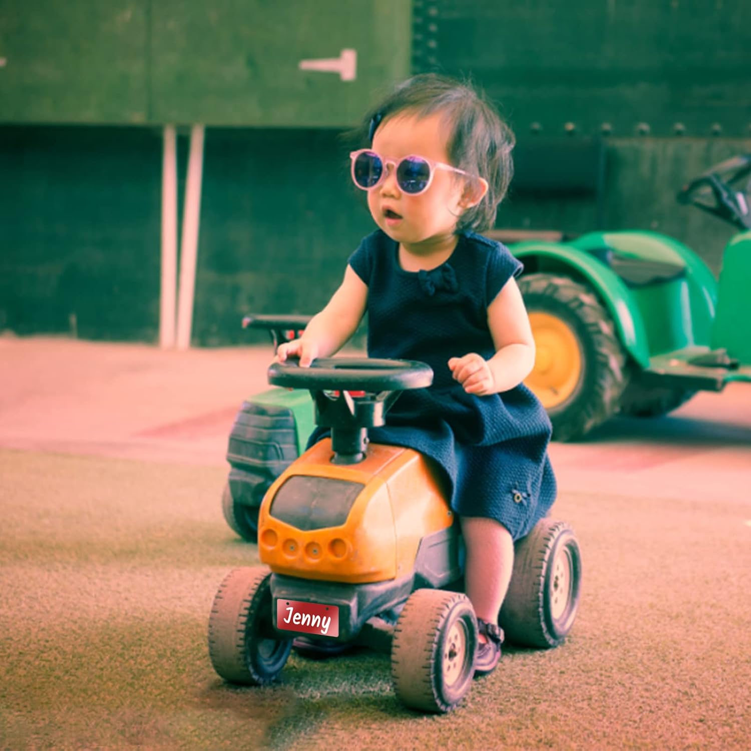 - 🚲EASY INSTALLMENT:Personalized license plate for kids bike comes with 2 holes, perfectly fit most of toy cars, bicycle and wagons.License plate personalized name can be easily mounted on every surface