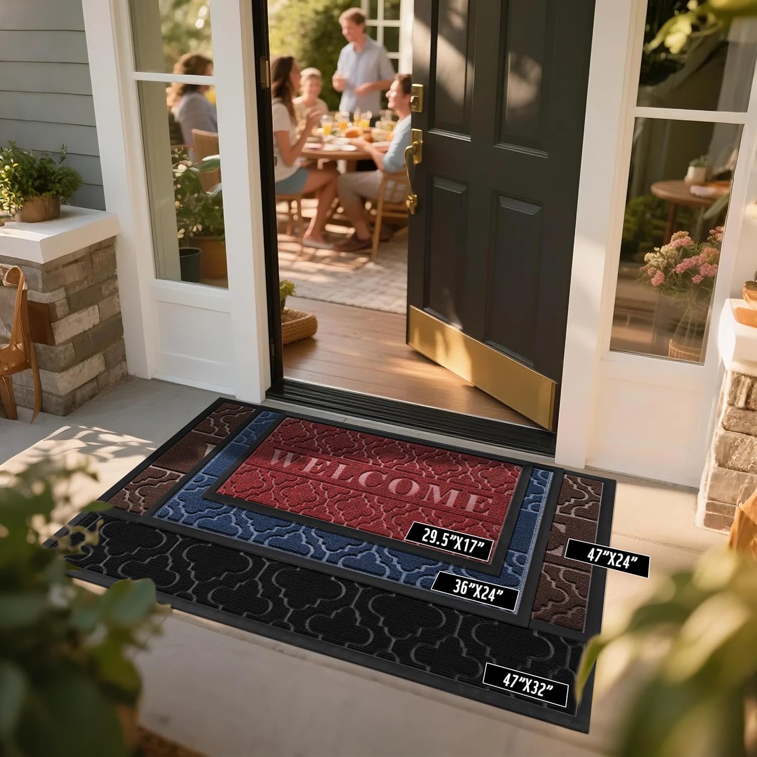 Yimobra Welcome Mat Outdoor Indoor, All-Season Waterproof Front Door Mat Outside Entrance, All-Weather Heavy Duty Non-Slip Doormat, Low Profile Porch Patio Entrance Mats, 36x24, Coffee