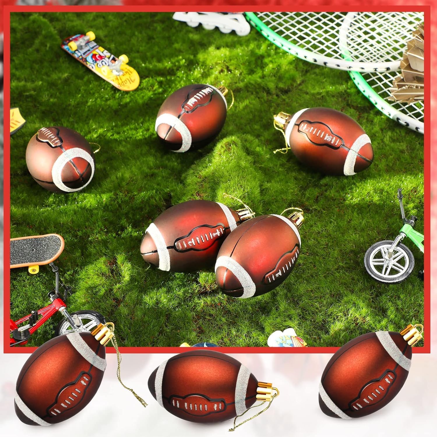 - Plentiful Quantity for Usage: the package includes 12 pieces Christmas football ball ornaments with hanging loops, which are approx. 60 mm/ 2.36 inches in height, easy to hang and decorate the Christmas trees