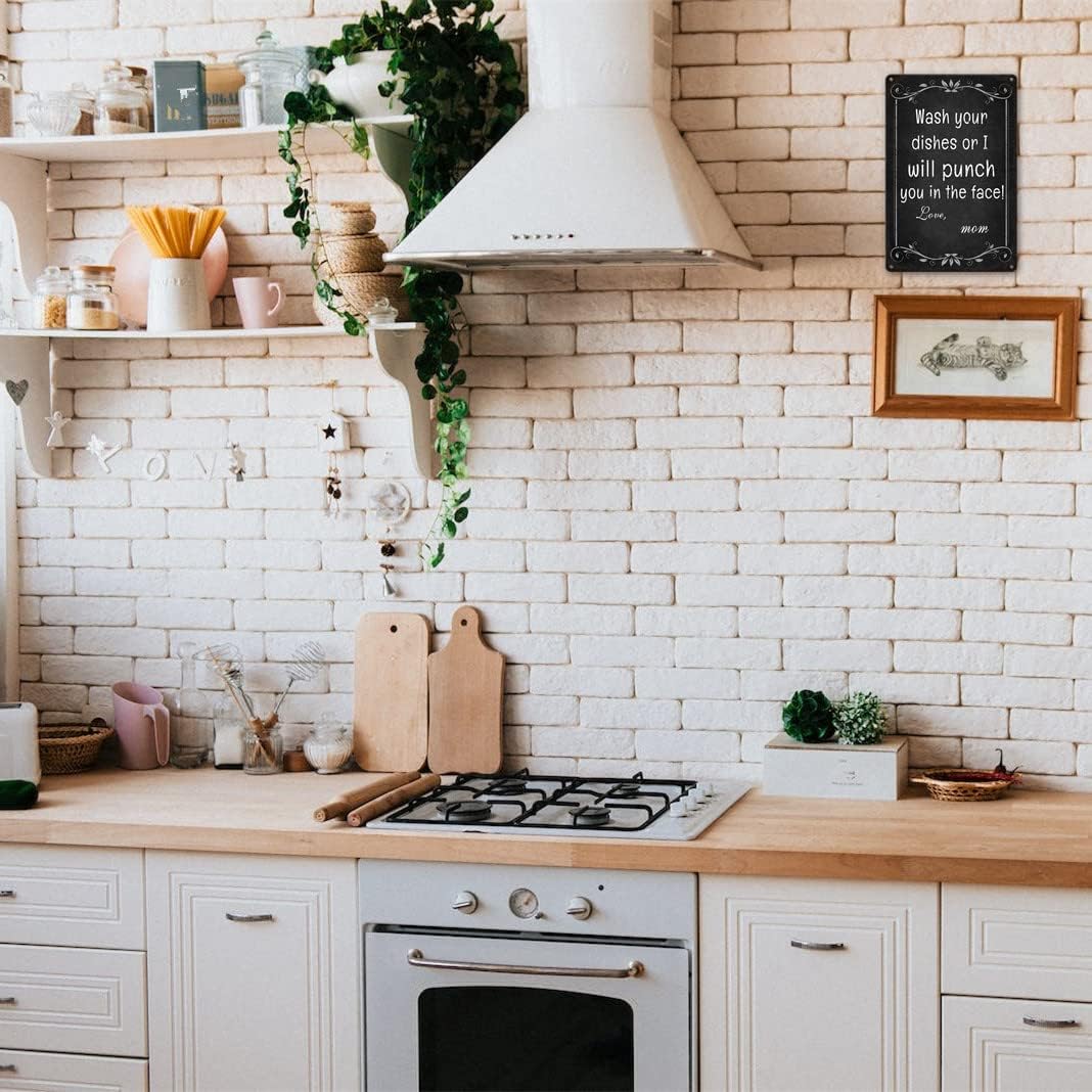 Kitchen Signs Wall Decor Funny Metal Tin Sign Kitchen Sets For Home Decorations Wash Your Dishes Or I Will Punch You In The Face Love Mom Coffee Bar Signs Decor House Rules Clean Your Dishes Sign
