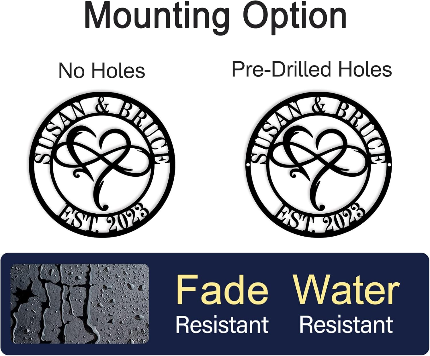 - Easy to Hang & Satisfaction Guaranteed: Various sizes(10 inch -36 inch) and colours options allowing you to match perfectly your room’s decor style, and we will provide you with screws for free, convenient pre-drilled holes that allow for flawless wall mounting.If your personalized signs for outdoors is damaged or incorrect for any reason, please contact us with a picture of the item and packaging and we will happily work with you to provide a replacement!