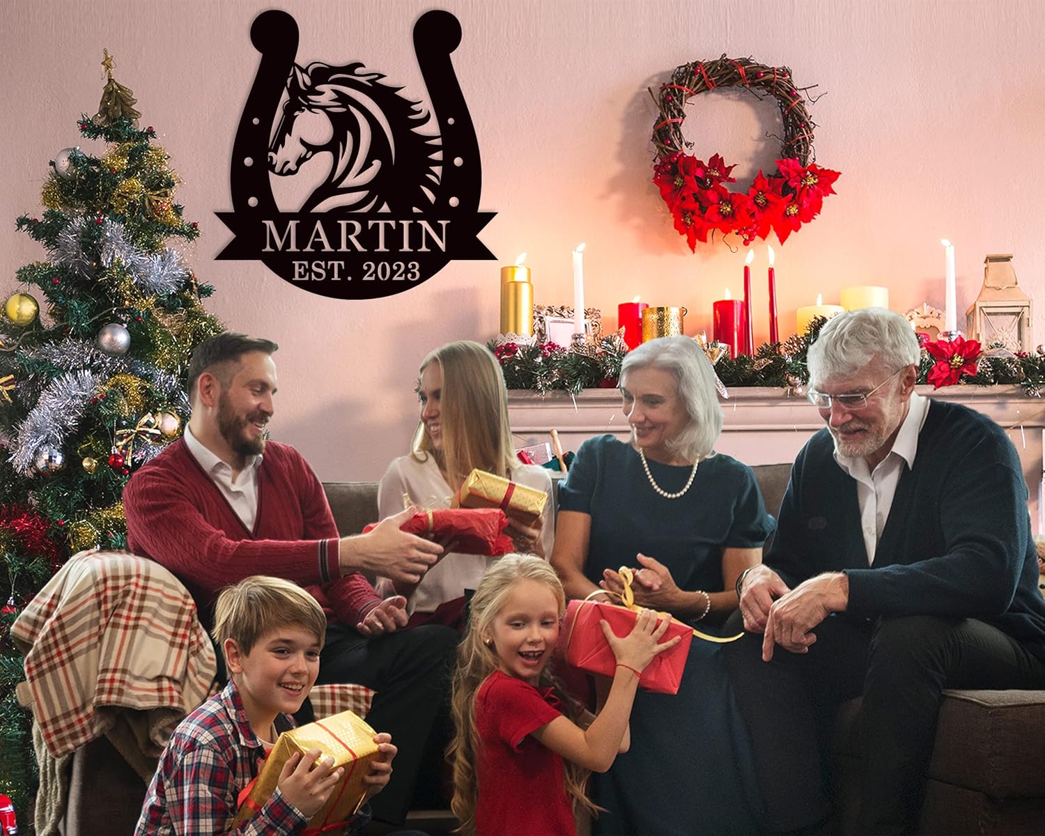 Personalized Horse Head Metal Sign,Horse Head Horseshoe Monogram Sign,Last Name Sign Equestrian Horse Lover Gift Horseshoe Living Room Decor