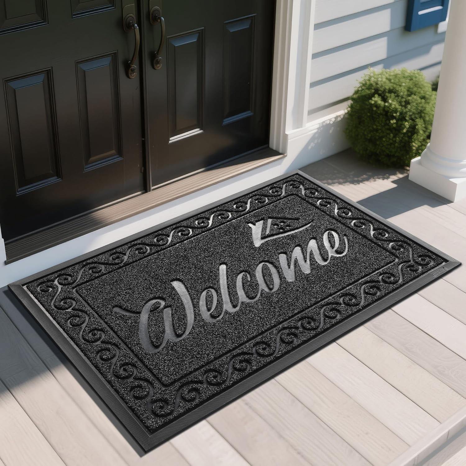 Yimobra Welcome Mat, Heavy Duty Sturdy Door Mats for Home Entrance Outdoor Indoor, Front Doormat for Outside Patio Floor Entry Porch Garage Office, Waterproof, Low Profile, 47X32 Inches, Black