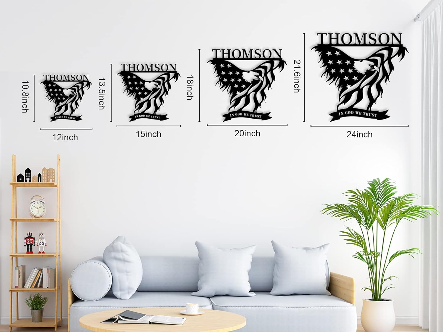 - Easy to Hang: The Custom Metal Eagle and Flag Sign is very easy to install, we offer multiple color and size options! The custom metal sign symbolizes a new beginning and makes you and your family infinitely beautiful. we will provide you with two screws for free and put this personalized sign on your doorway or wall within minutes!