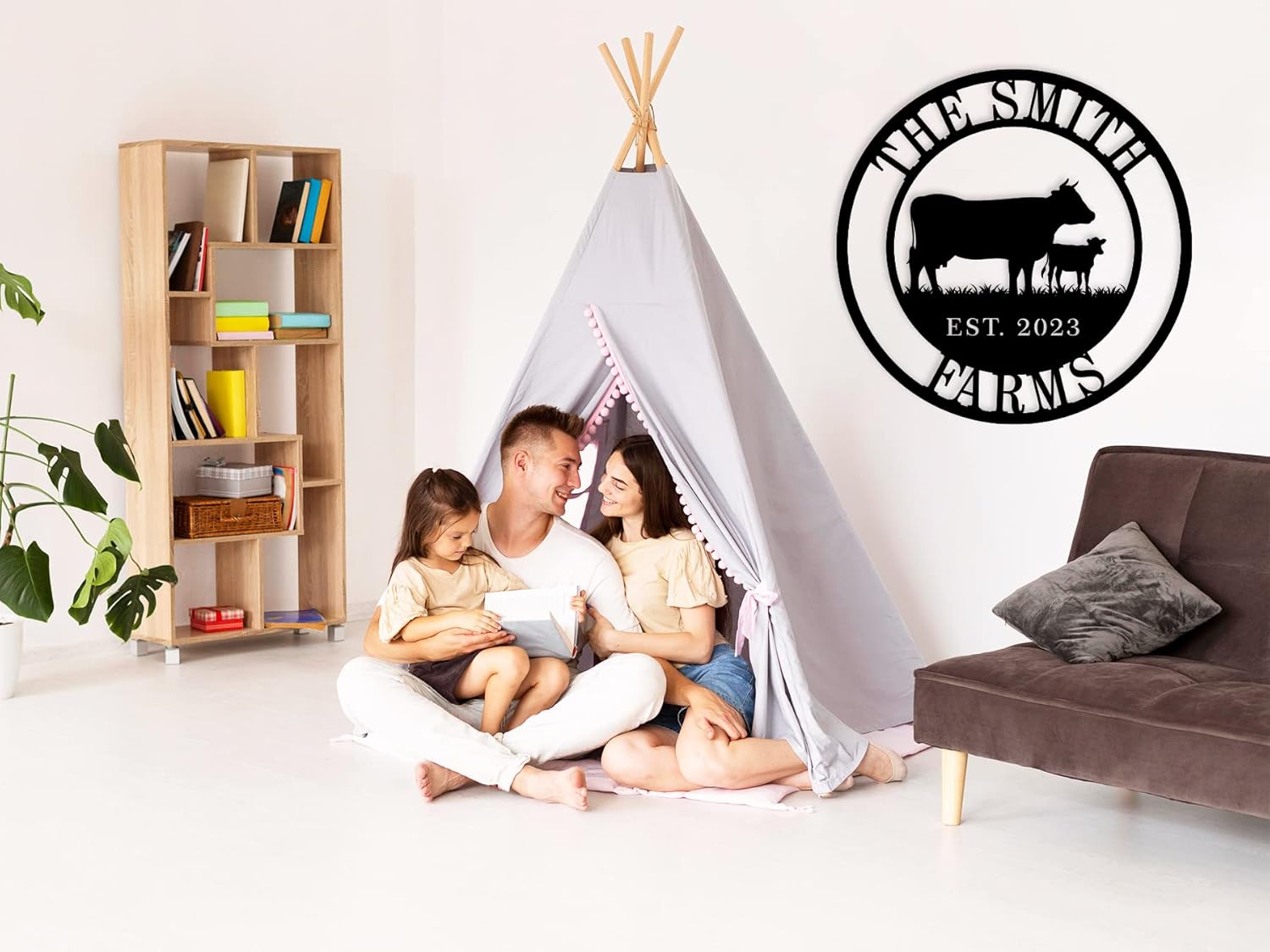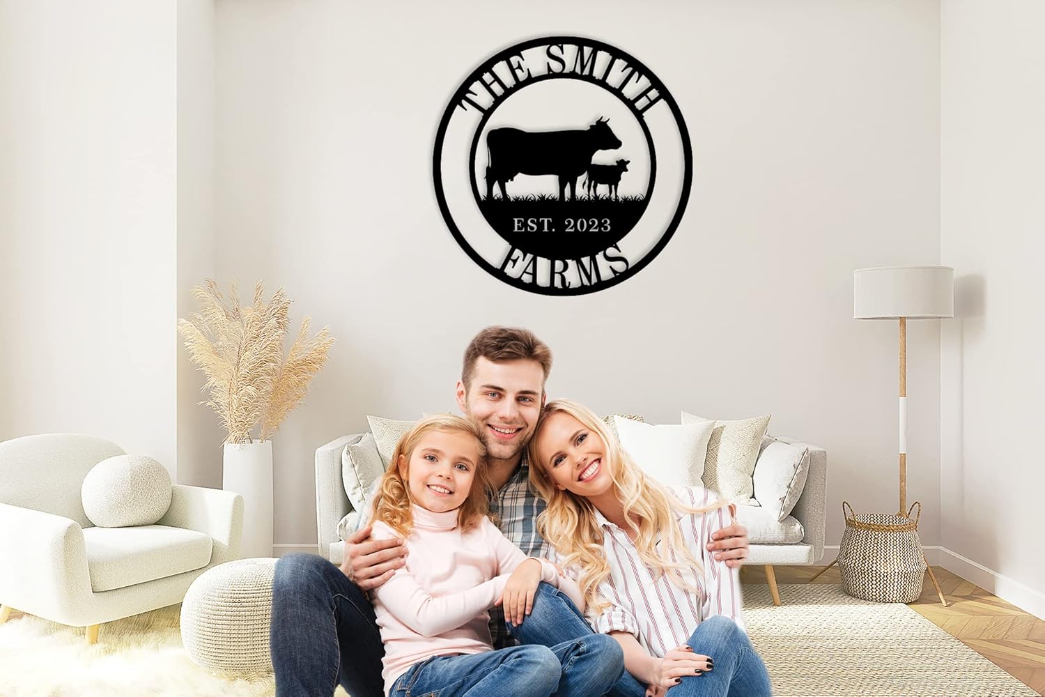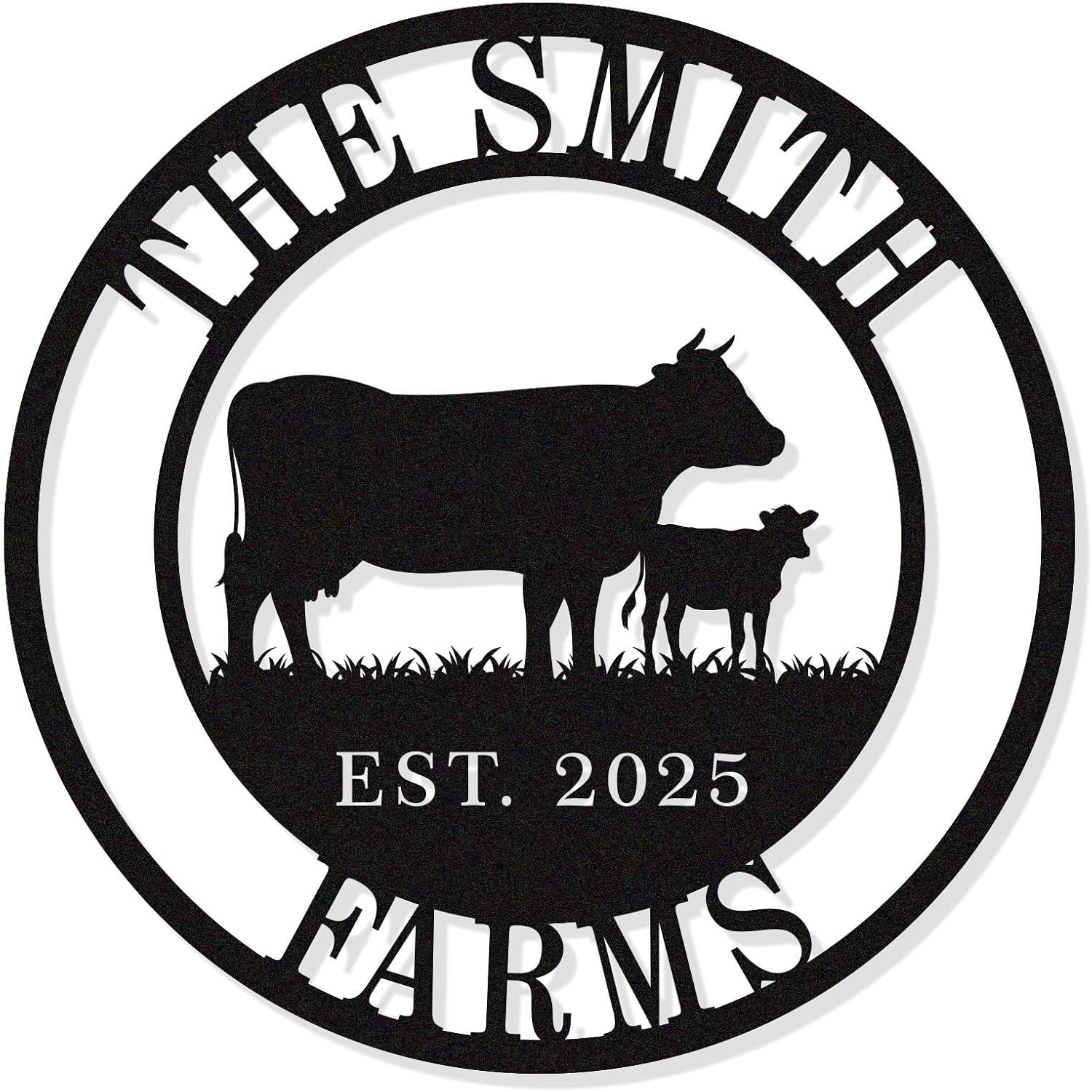 Personalized Cow Calf Metal Sign, Personalized Family Monogram Name Sign, Custom Cow Calf Farm Sign