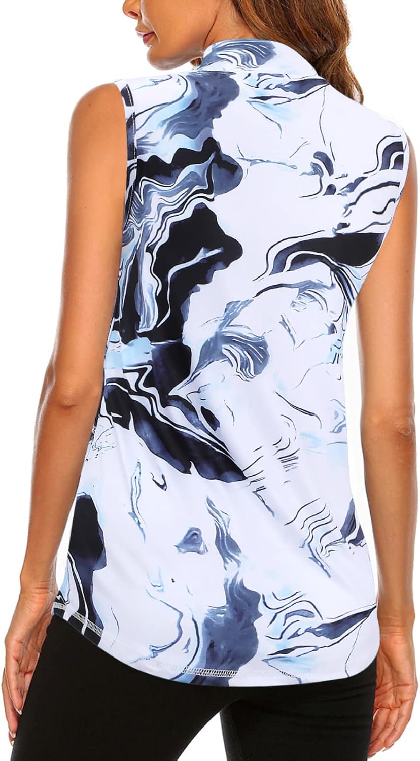 - Half Zipper Collar - Stand out from the crowd with our stand collar, sleeveless, v neck golf tank top. Half zip design allows for neck coverage, venting and easy on-off.