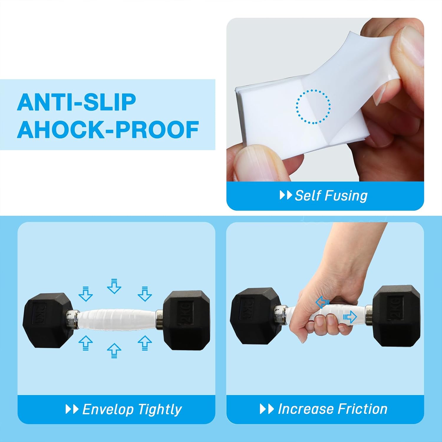 2 Rolls 1IN X 10FT Grip Tape, Self Fusing Silicone Grip Wrap for Handles, No Adhesive, White