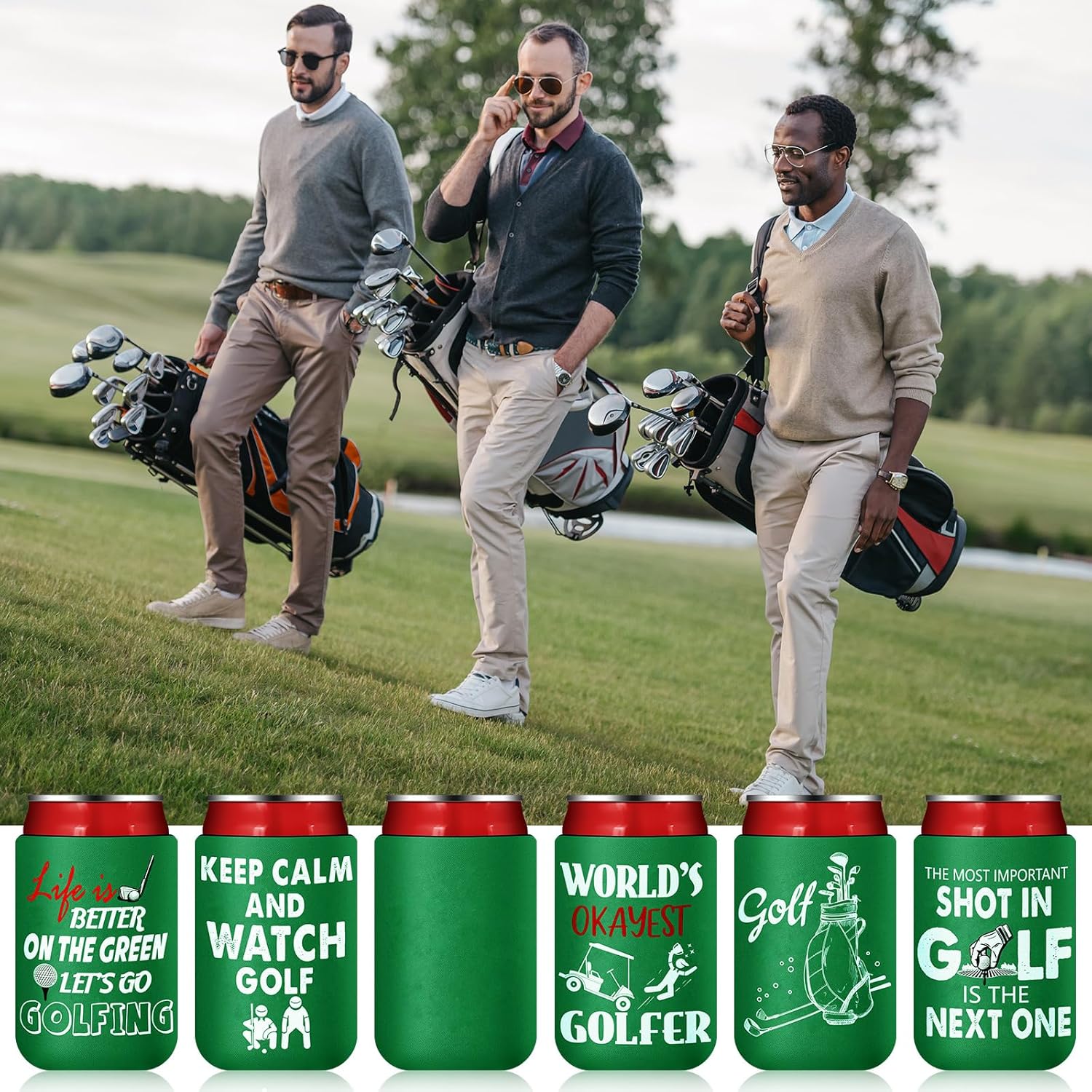 Domensi 16 Pcs Golf Gifts Funny Golf Party Themed Can Cooler Insulated Can Sleeve Bulk Golf Party Supplies for Golfer Game Outdoor Activities Decorations, 12 oz Can (Classic)