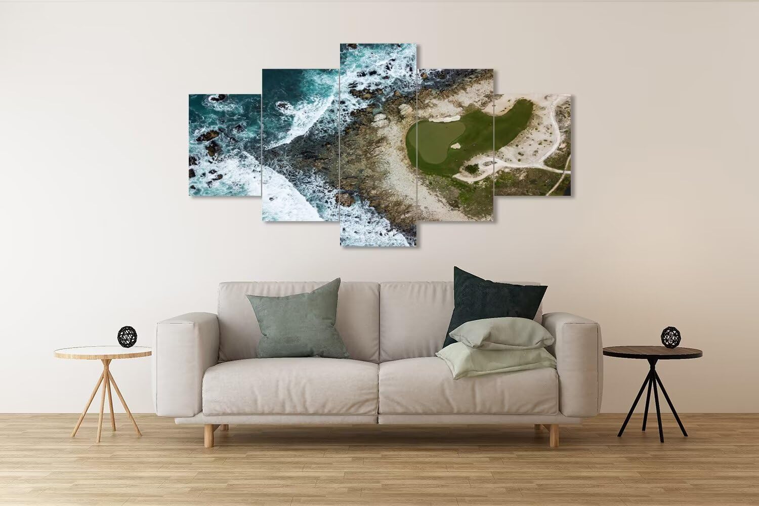 - 💝Golf course wall art size: 60Wx32H inch. Each panel size: 12x16inchx2,12x24inchx2,12x32inchx1,golf canvas prints easy ready to hang.