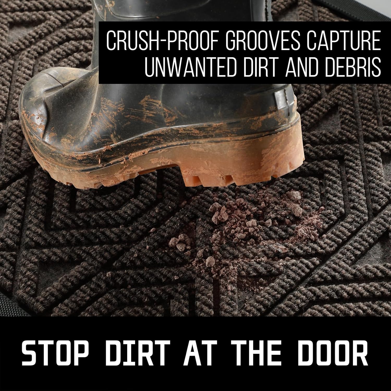 - [CAPTURE DIRT AND MOISTURE] Yimobra front door entryway mat outdoor with unique pattern design, forming a detention dam extending in all directions, helping to capture dirt, dust, gravel, mud, sand, grass or other messy debris and prevent them from entering Indoor; The surface of floor mat beautifully woven polyester fabric absorbs moisture, and the sturdy oblique rubber edge will not accumulate water in rainy and snowy days, keeping your home dry and clean