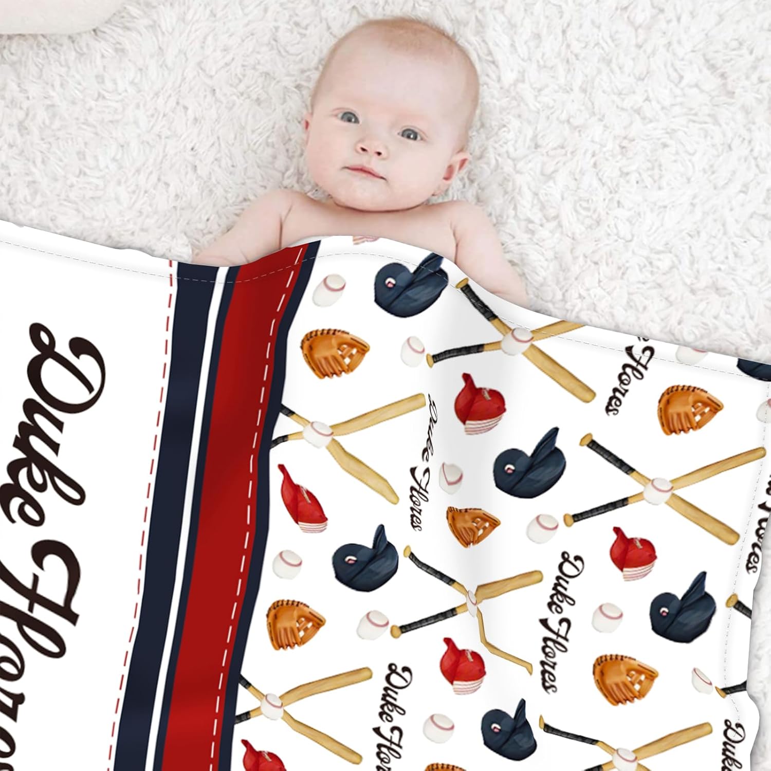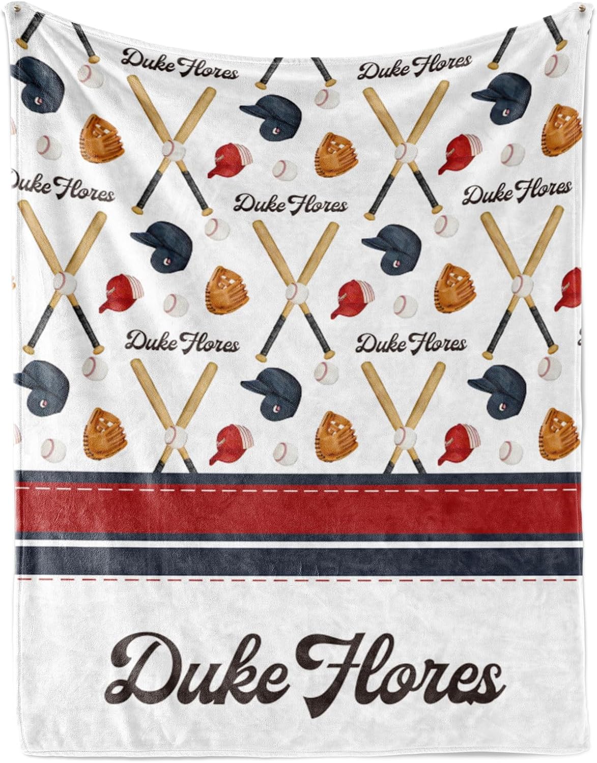 Custom Name Baseball Blanket - Personalized Names Soft Plush Flannel Throw Blankets for Baby Kids Teen Boys Girls Holidays Birthdays Gifts Color03