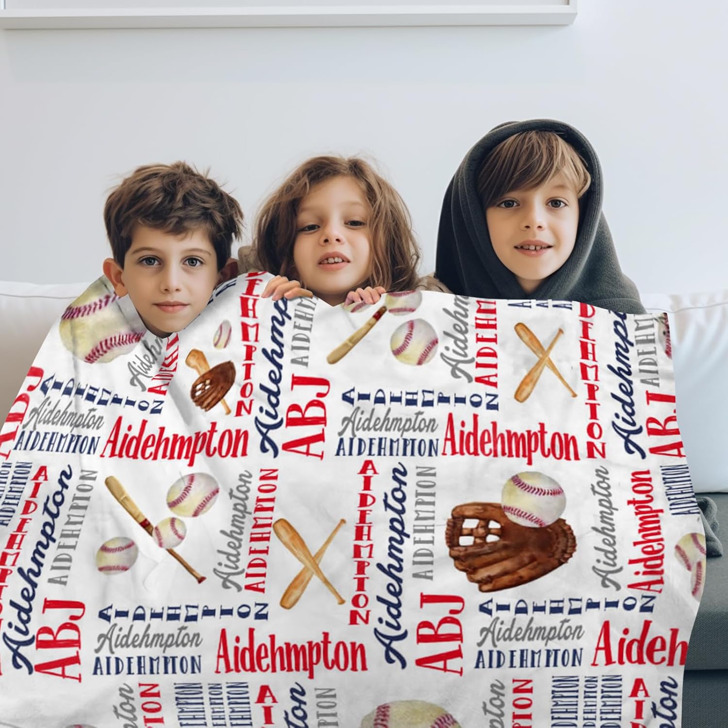 Custom Name Baseball Blanket - Personalized Names Soft Plush Flannel Throw Blankets for Baby Kids Teen Boys Girls Holidays Birthdays Gifts Color04