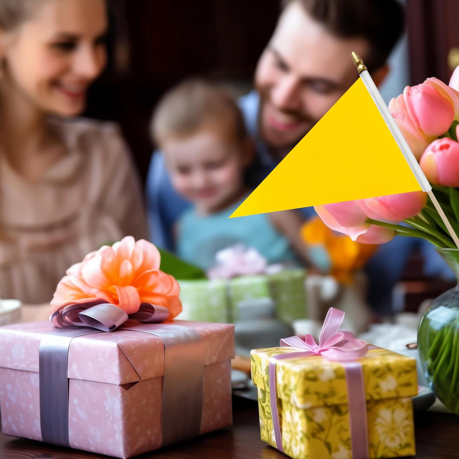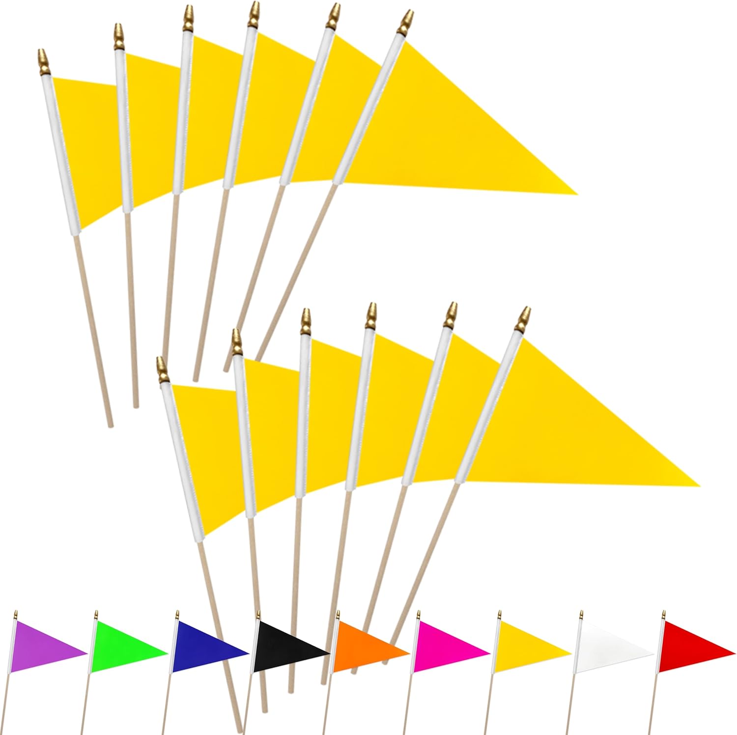 20 Pack Solid Color Yellow Blank Pennant Flags on Wood Stick Small Mini Plain DIY Graffiti Flags,Decorations for Parades,Grand Opening,Kids Birthday,Sports Clubs,5x8 Inch