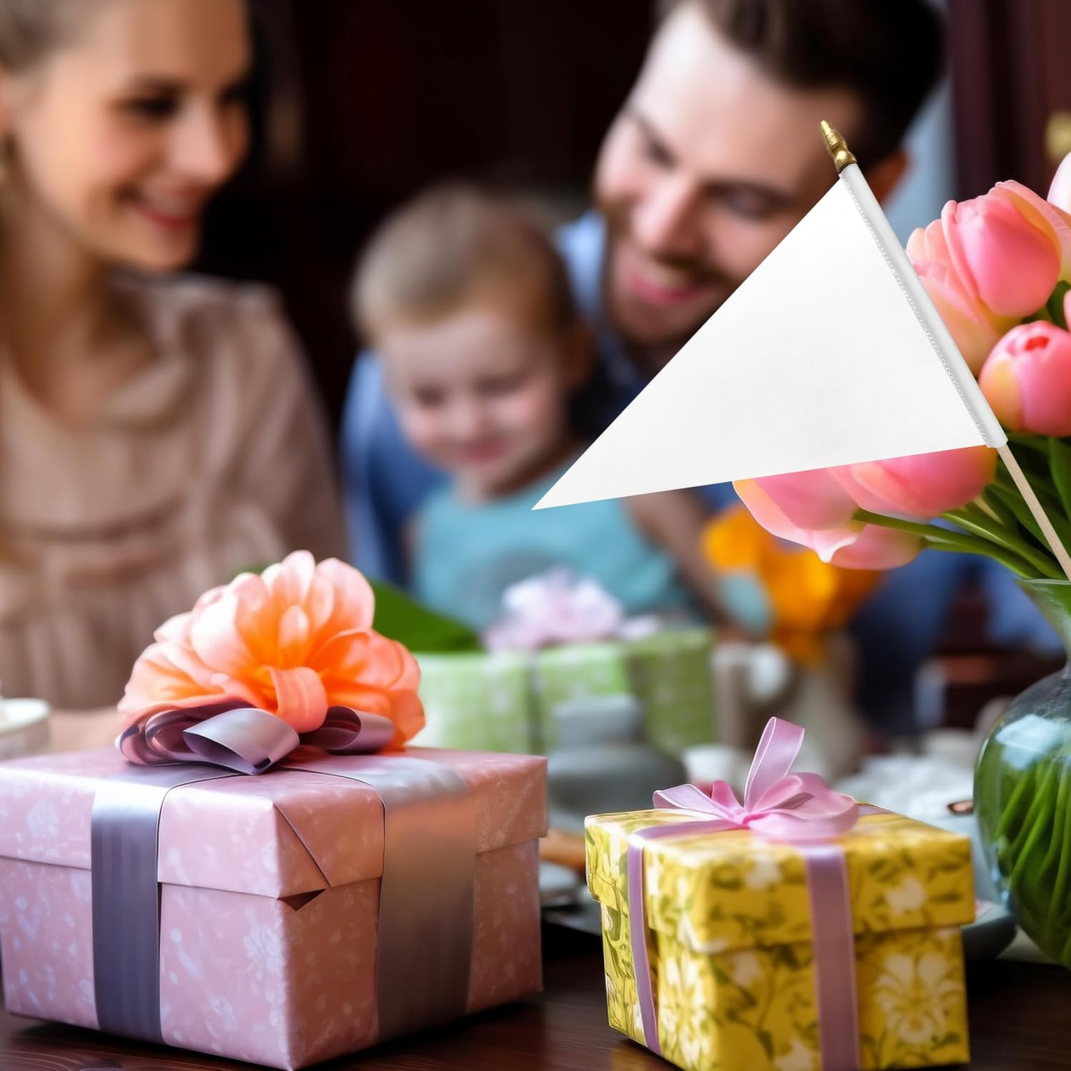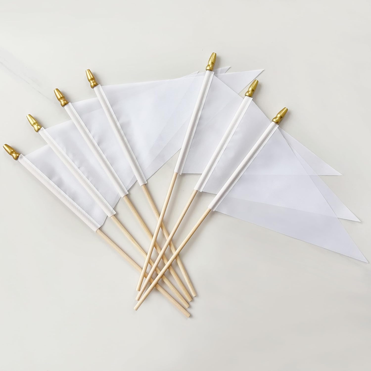20 Pack Solid Color White Blank Pennant Flags on Wood Stick Small Mini Plain DIY Graffiti Flags,Decorations for Parades,Grand Opening,Kids Birthday,Sports Clubs,5x8 Inch