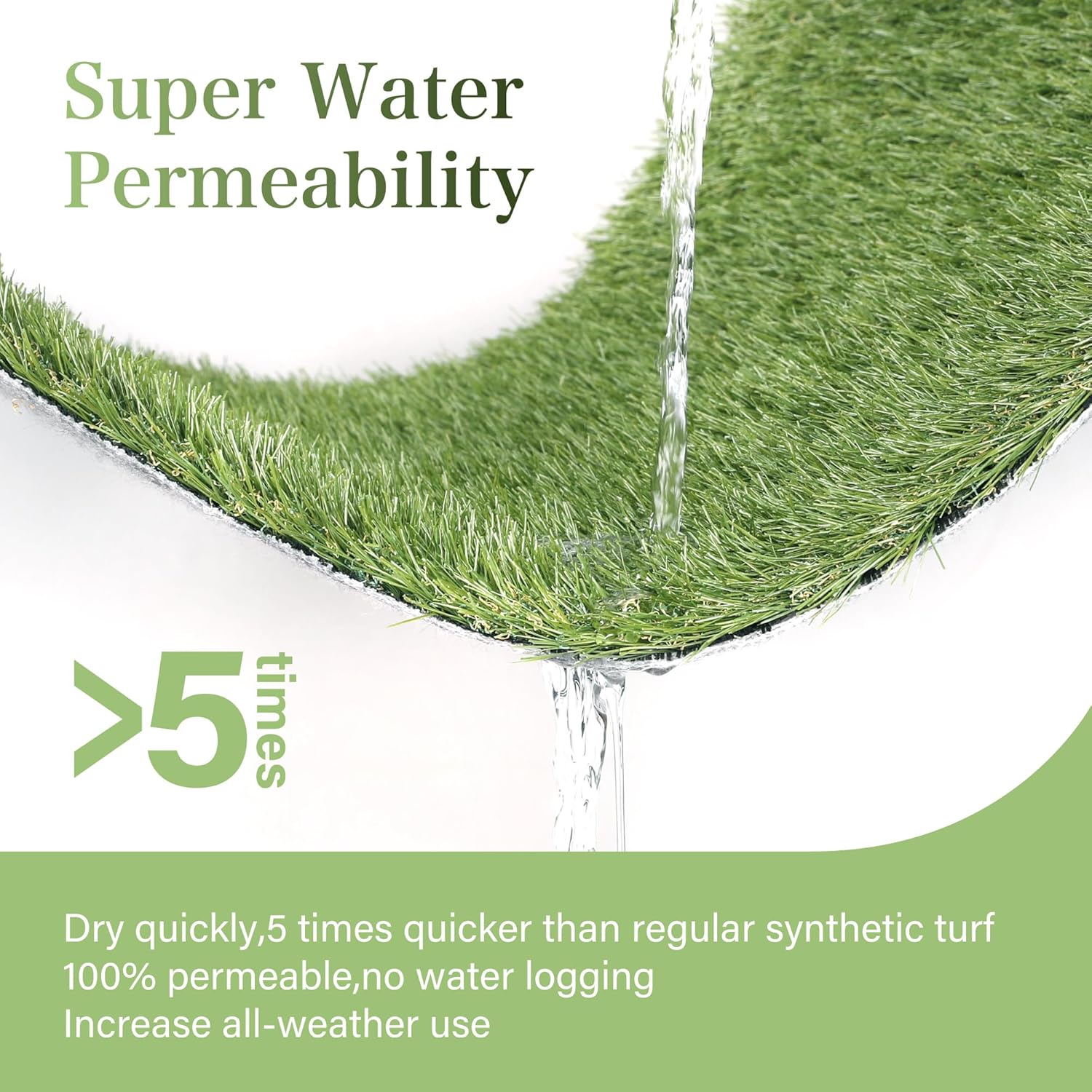 - 4-Layer Drainage Artificial Grass System: Engineered with breathable four-layer backing, this synthetic turf ensures rapid water drainage through permeable gradient layers — simply rinse debris with mild soap and water for effortless cleaning, maintaining turf grass hygiene in rainy or snowy conditions.
