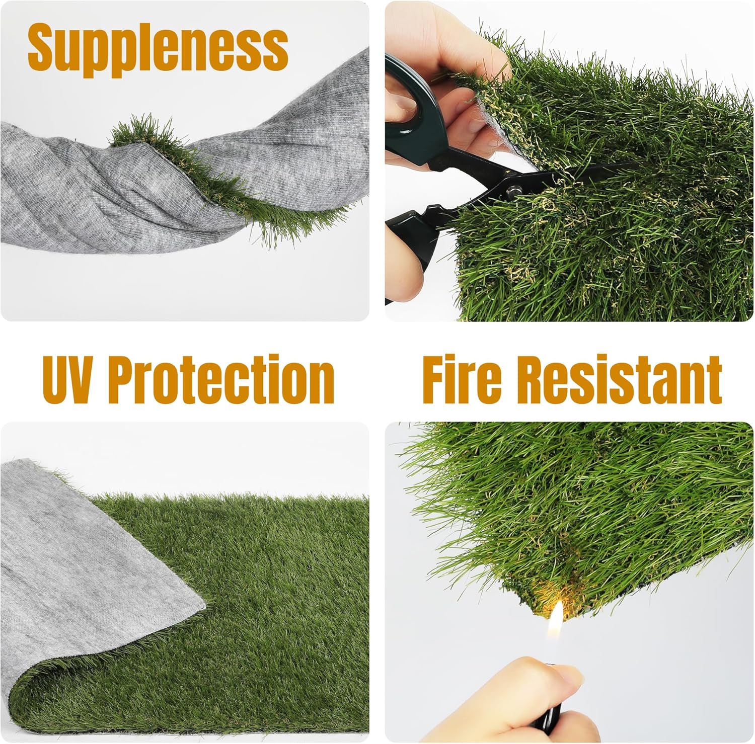 - 1.2" Soft Artificial Grass for Pets & Kids: This 1.2-inch thick turf grass features a densely packed surface with smooth, natural green blades — safe for barefoot play and pet activities while retaining its realistic appearance through seasonal weather changes.