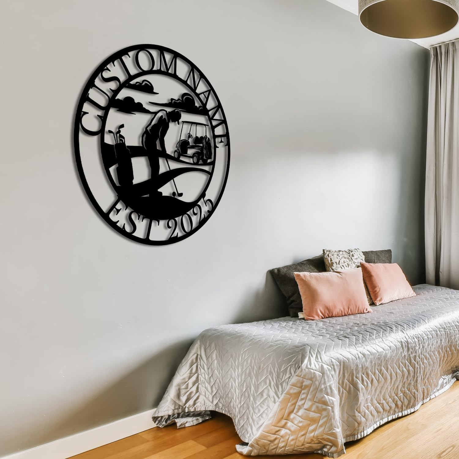 Personalized Custom Crossed Golf Metal Wall Art,Personalized Golfer Name Sign Decoration For Room,Hole Golf Club Decoration (Style-1)