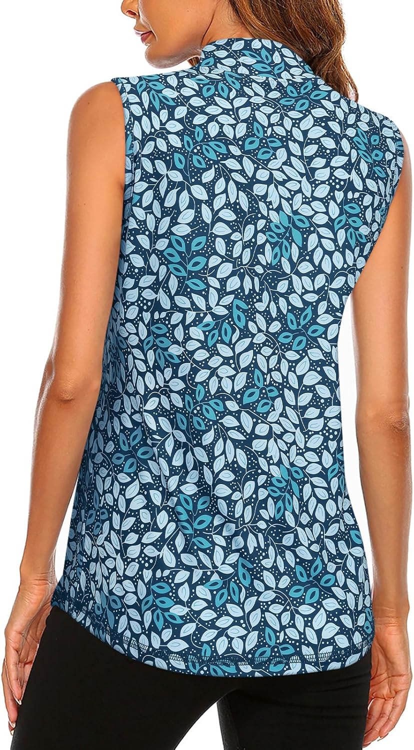 Koscacy Women's Sleeveless Golf Tennis Polo Shirts Zip Up Dry Fit Workout Tank Tops Athletic Shirt