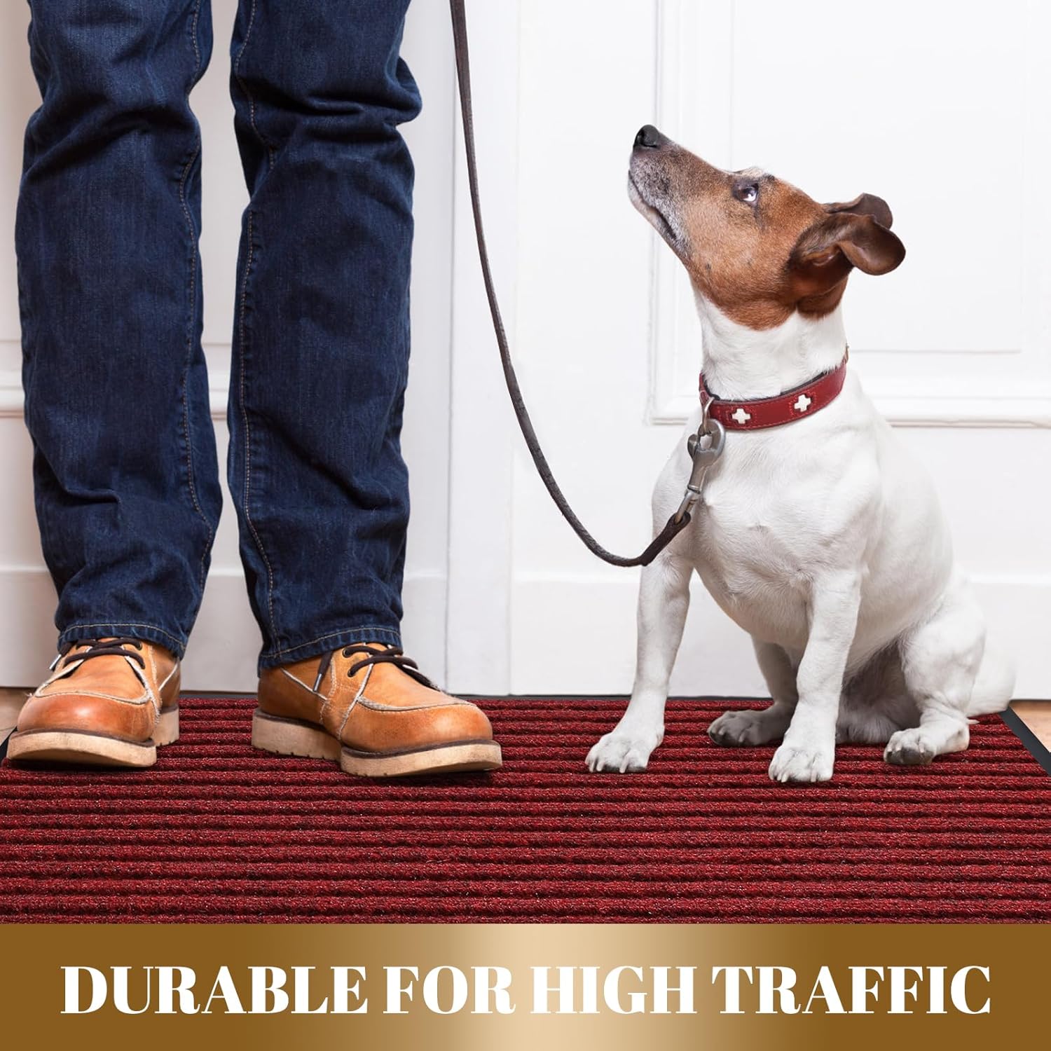 Yimobra Front Door Mat Outdoor Indoor Entrance, 100% Waterproof All-Season All Weather Doormat, Welcome Matt Outside Entry, Non Slip, Low Profile, Heavy Duty Patio Porch Floor Mats,36 x 17,Black Red