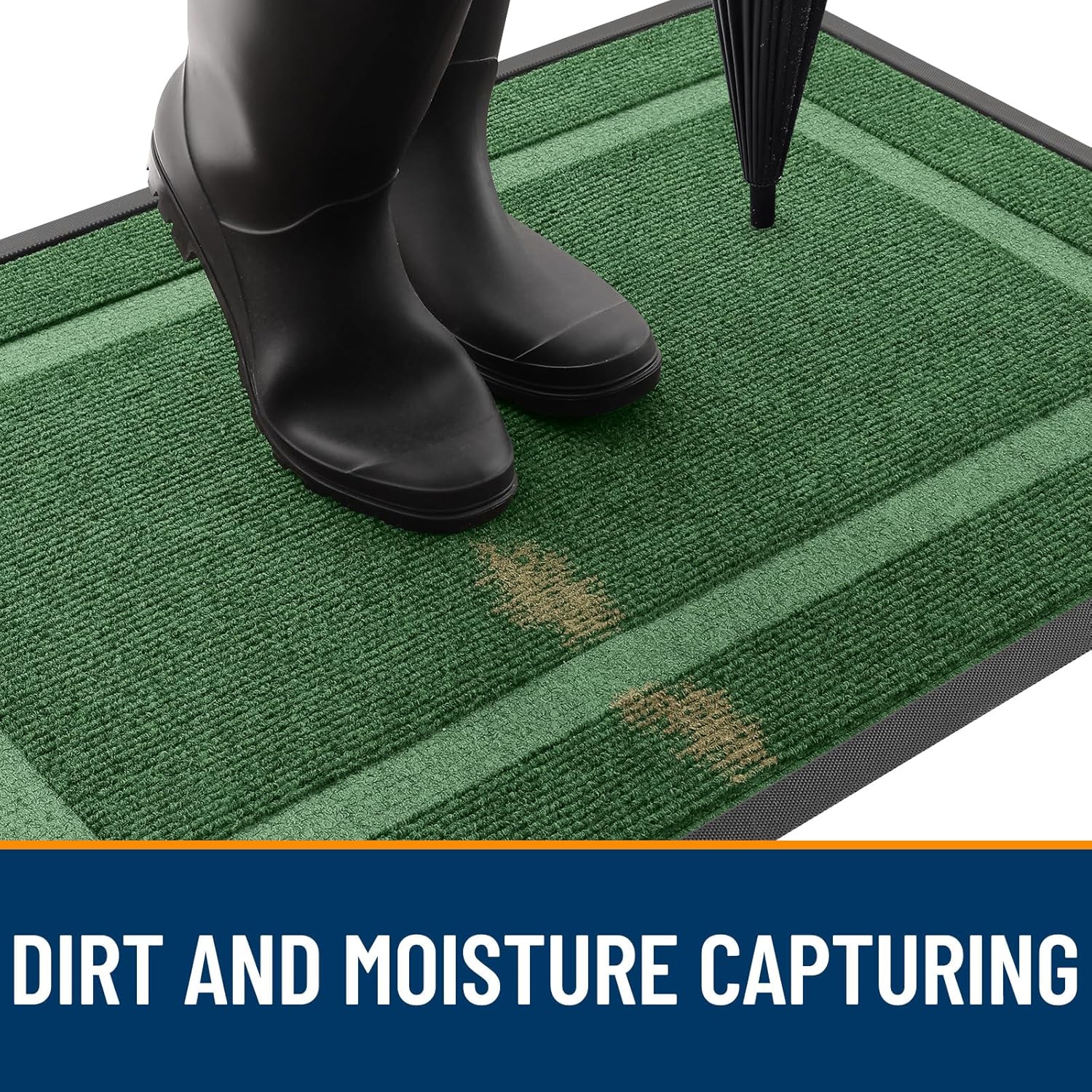 OLANLY Front Door Mat Indoor Outdoor Entrance, Waterproof All-Season, All-Weather Doormat, Sturdy Natural Rubber, Fade Resistant, Low Profile, Easy Clean Patio Porch Entryway Mat, 71x23, Green