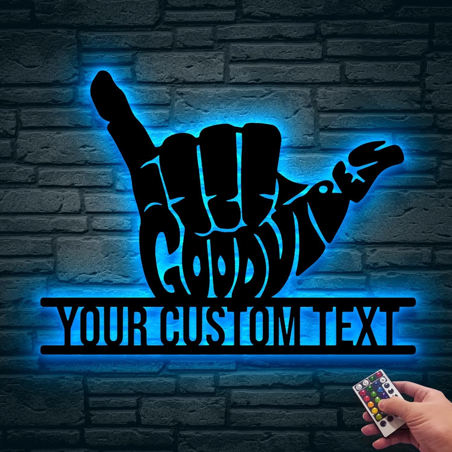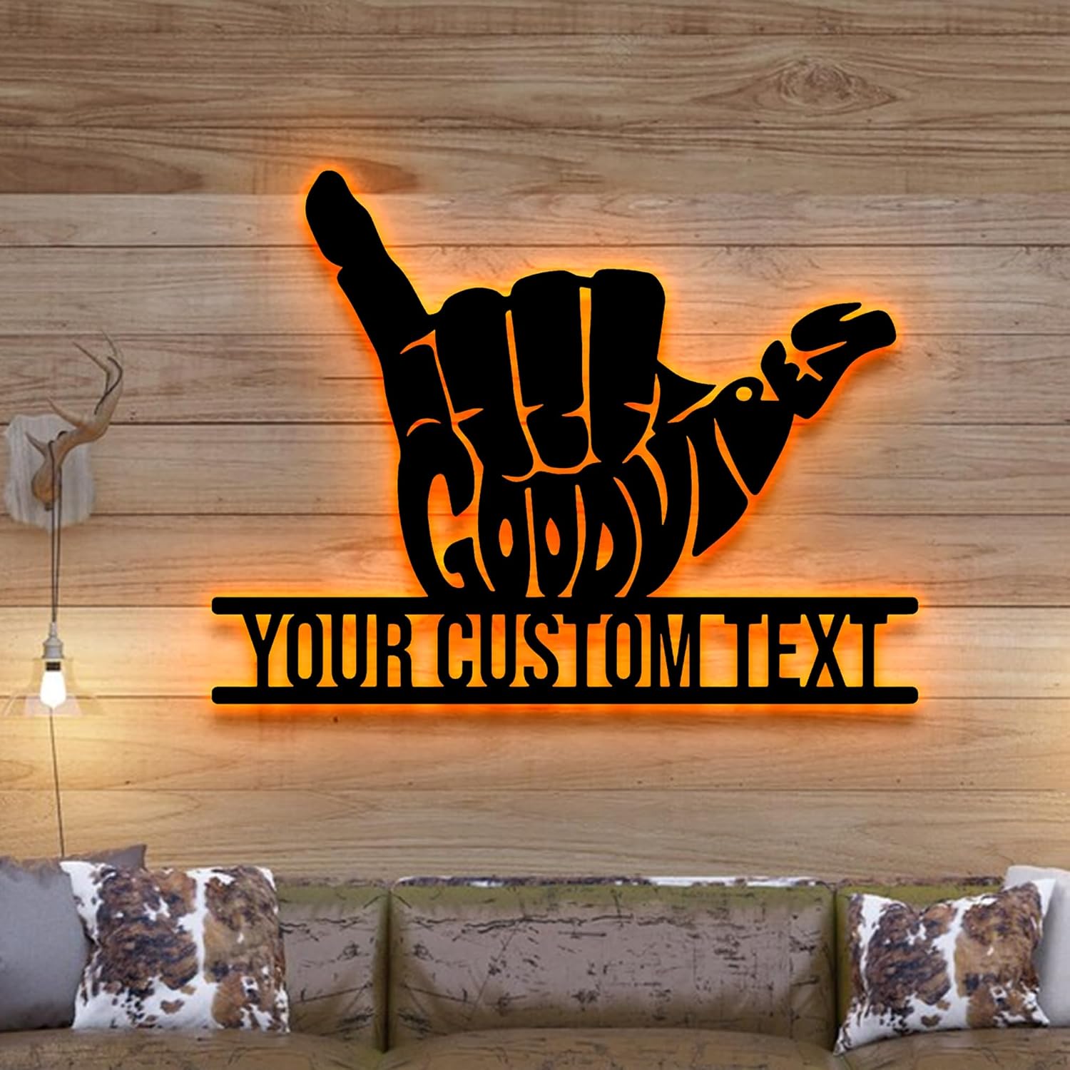 Custom Hang Ten Surfing Hand Metal Wall Art With LED Lights Summer Vibes, Outside Wall Hanging, Home Decor, Birthday Gift, Christmas Gift