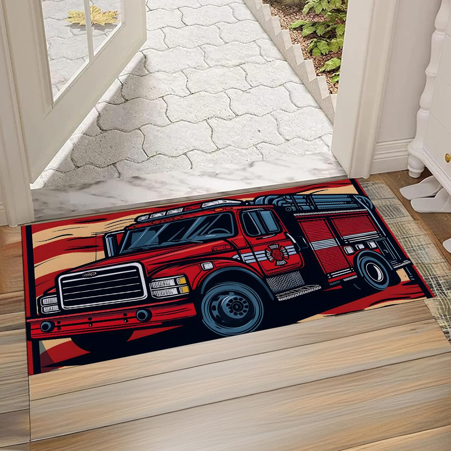 American Flag Fire Truck Indoor Door Mat,Front Door Mat Entrance,17x29.5 in,Non-Woven Fabrics Non Slip Floor Doormat,Welcome Mats Entryway Rug Doormats for Kitchen Bedroom Living Room Decor Gifts