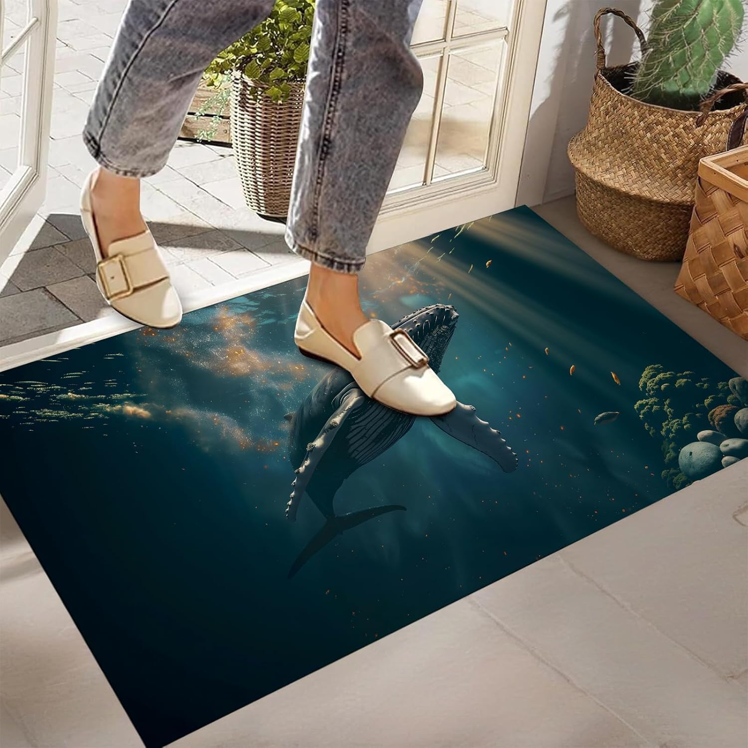 Killer Whale Indoor Door Mat,Non-Woven Fabric Door Mat,Anti-Slip Backing Welcome Mat for Front Door,Indoor Entrance,Kitchen, Bedroom,Living Room-Durable Floor Mat for Home Decor & All Seasons