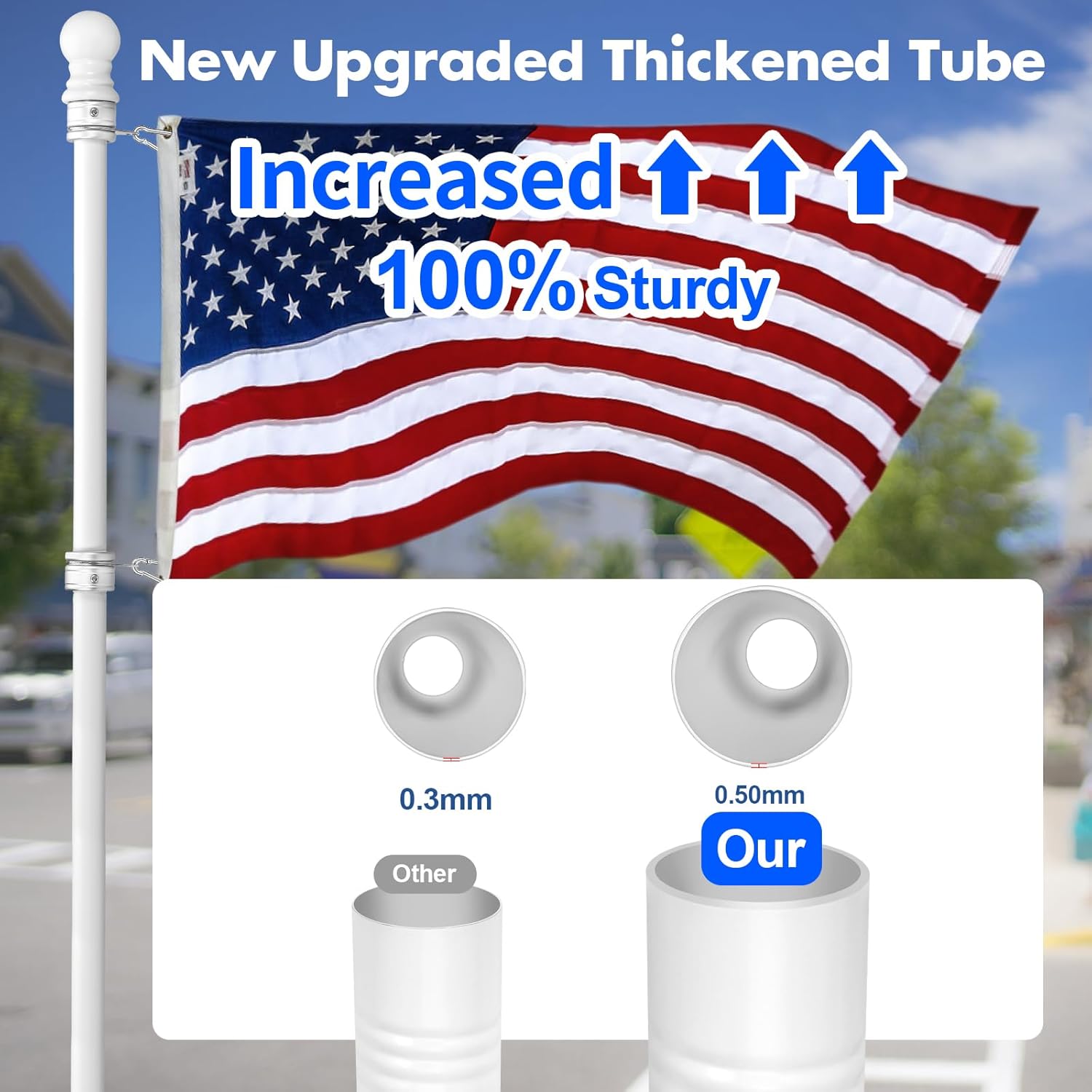 - 7 FT Upgraded Thicken Flag Pole Kit: Our Flag pole is made of high quality stainless steel, and features a durable 0.5mm upgraded thicken construction, designed for superior stability and enduring performance against the elements.
