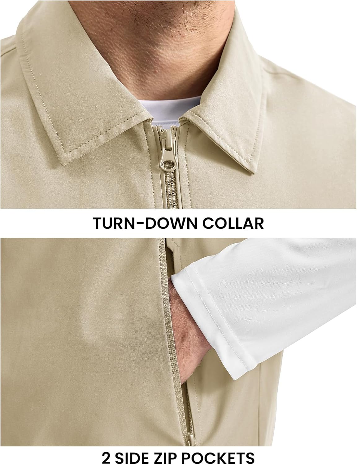 Rdruko Men's Golf Vest Lightweight Outerwear Windproof Water Resistant Grid Lining Vest with Zipper Pockets for Casual
