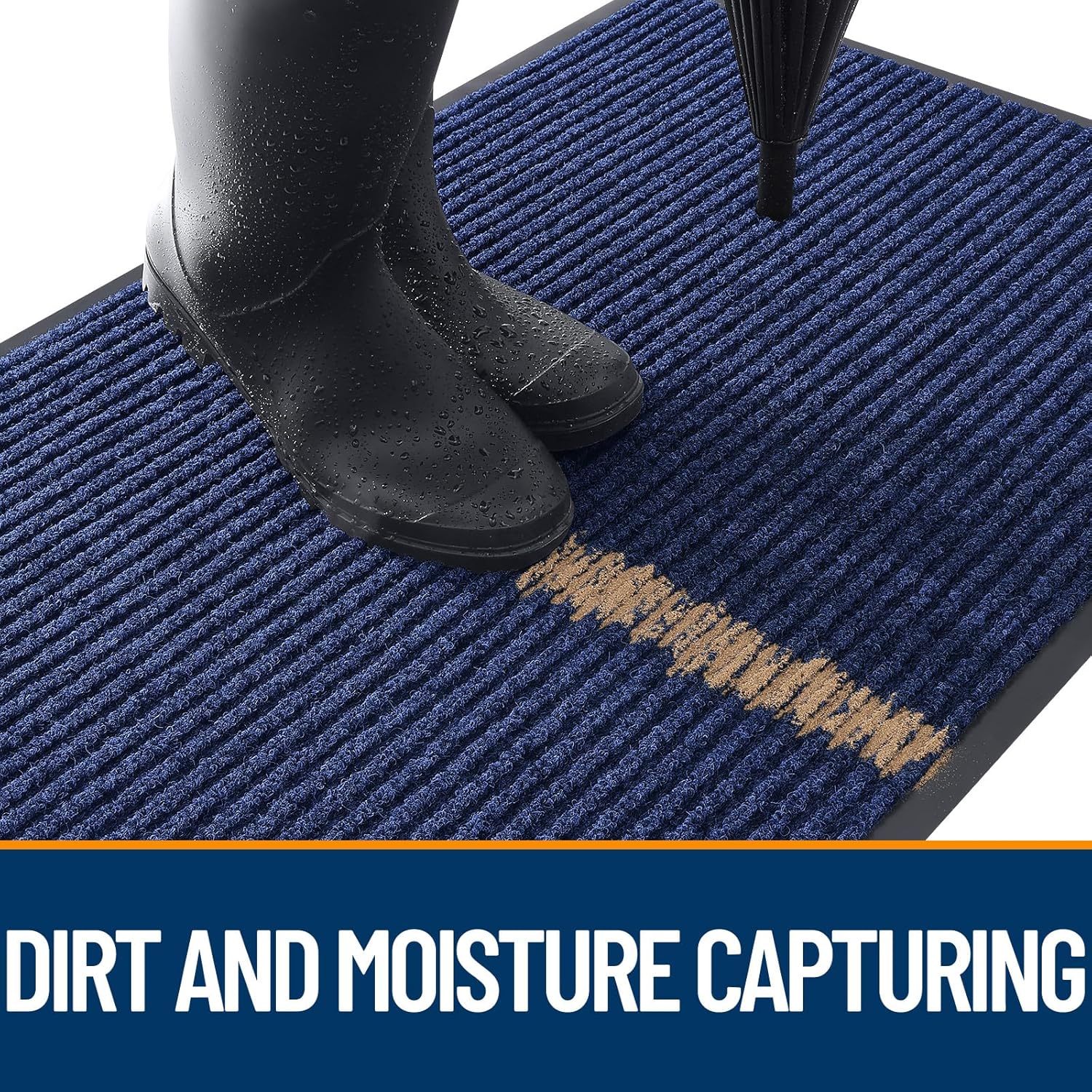 OLANLY Front Door Mat Indoor Outdoor Entrance, Waterproof Heavy Duty Doormat, Fade Resistant, Low Profile, Easy Clean Patio Porch Welcome Floor Mats for Entry, 59x20, Blue