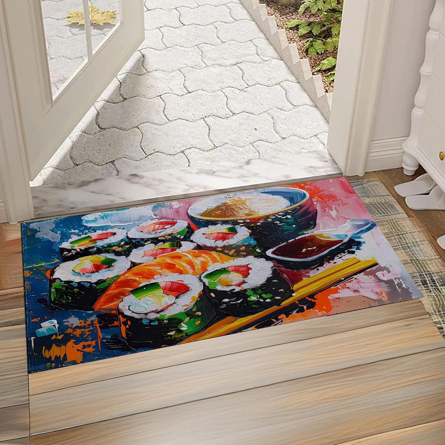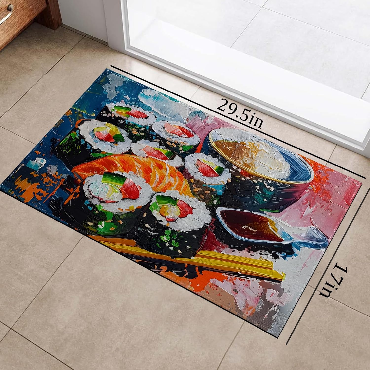 Colorful Sushi Indoor Doormat, Non-Woven Fabrics Non Slip Floor Mat 17x29.5 in Area Rug Quick Absorbent Entrance Rug Front Door Mat, Welcome Mats Entryway Rug Doormats for Kitchen Home Bedroom