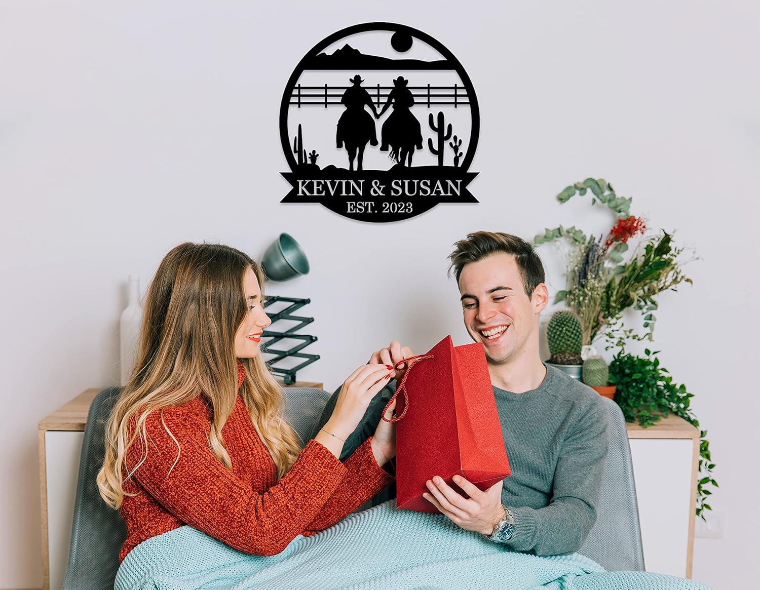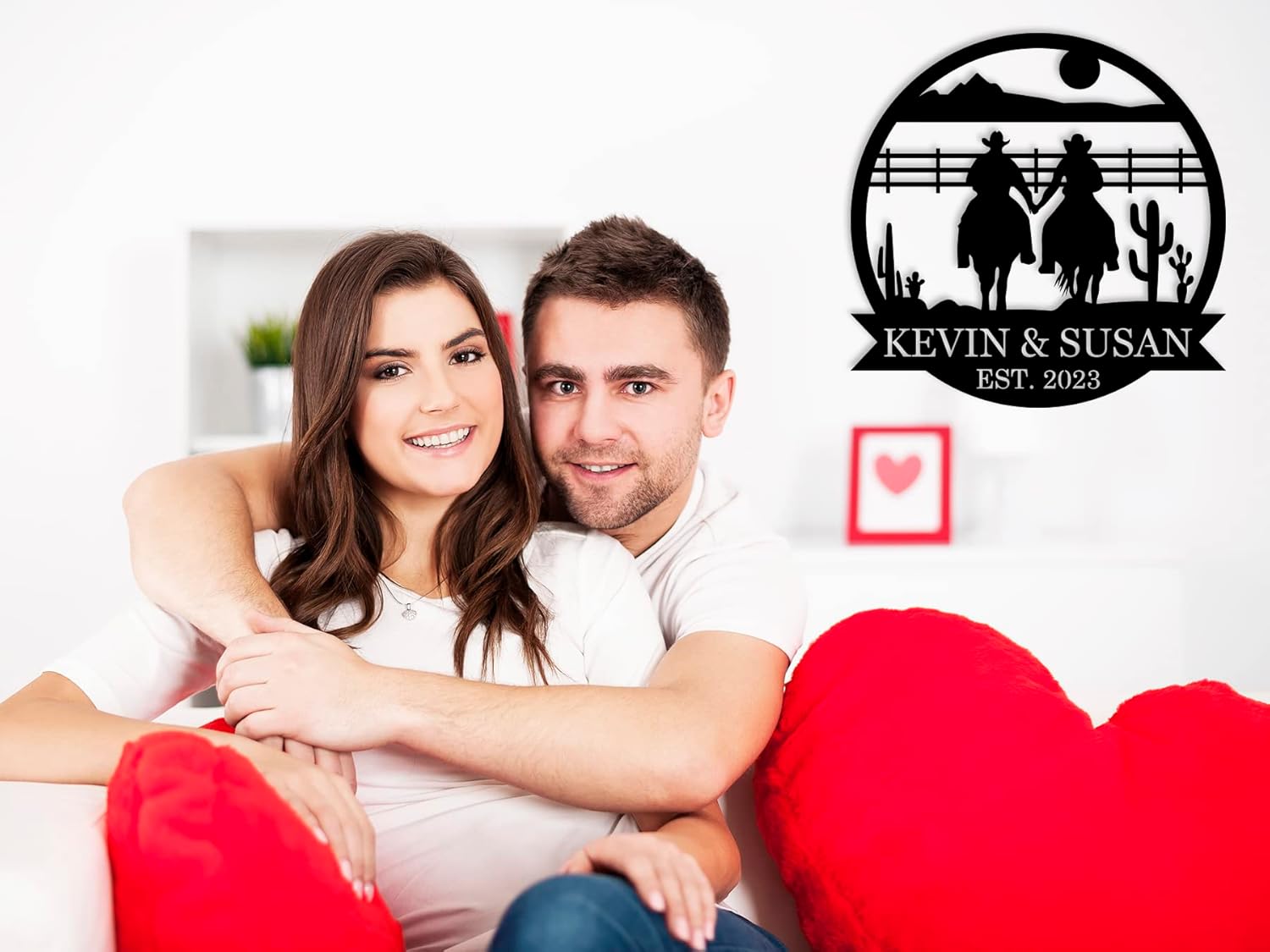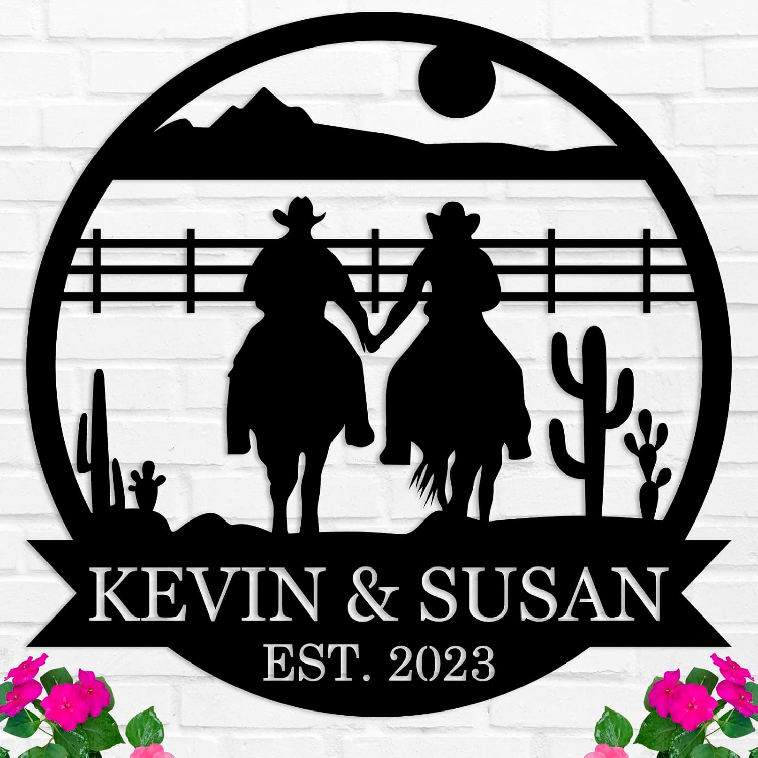 - Personalized Home Decor: Our Personalized Cowboy and Cowgirl Couple Sign offer an extraordinary addition to your home decor! Personalize your personalized sign with your custom text and it will be cherished by your family for years to come. The custom metal signs also lend rustic elegance to a wall or old world charm to an indoor and outdoor space.