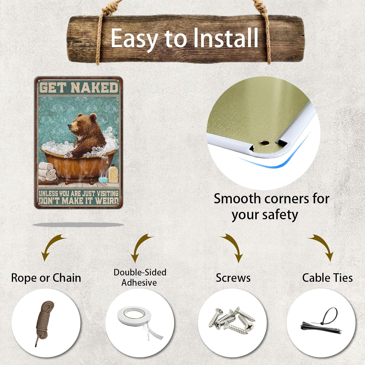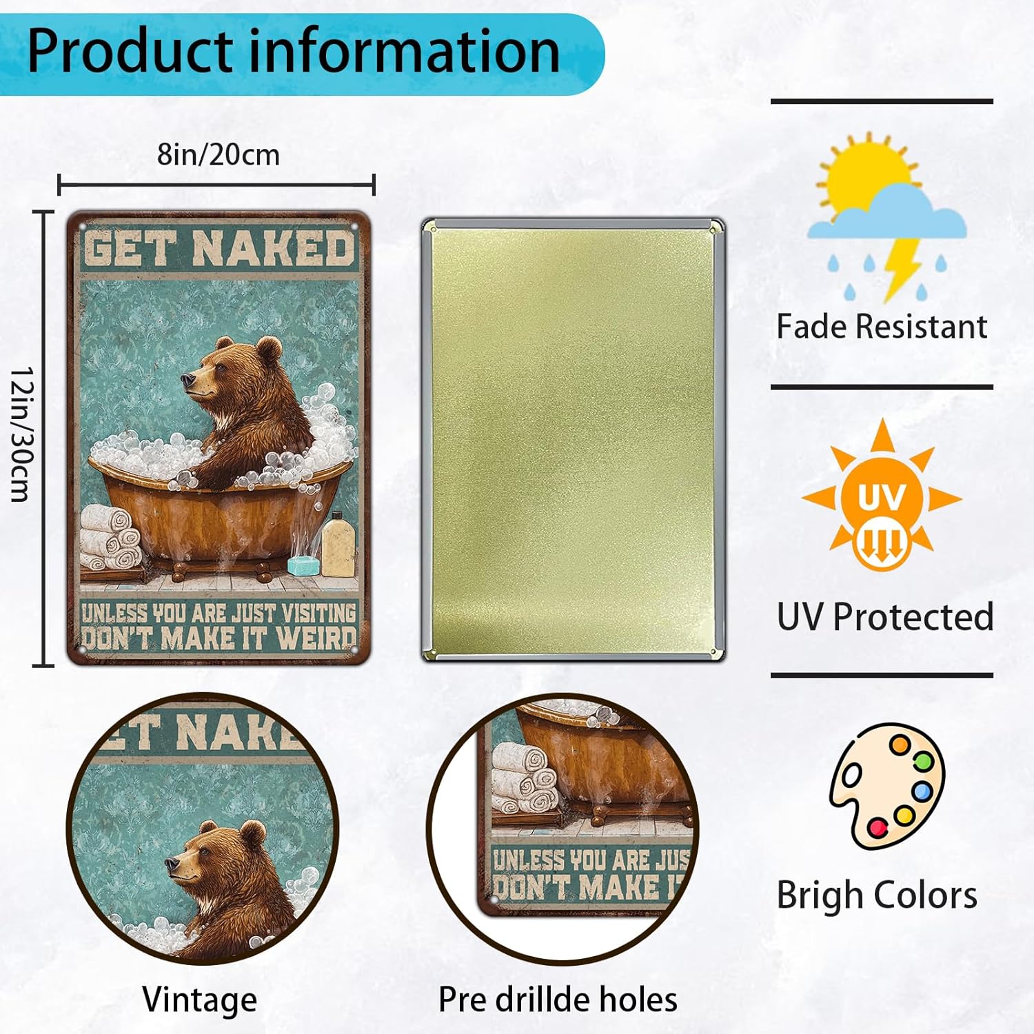 - 1.♦ [Size:] Funny Vintage Metal Tin Sign Size:12 (W) X 8 (H) Inchs, (30x20 CM) Suitable For Various Wall Decoration Needs Of Indoor And Outdoor Bathroom Farmhouse Decor.