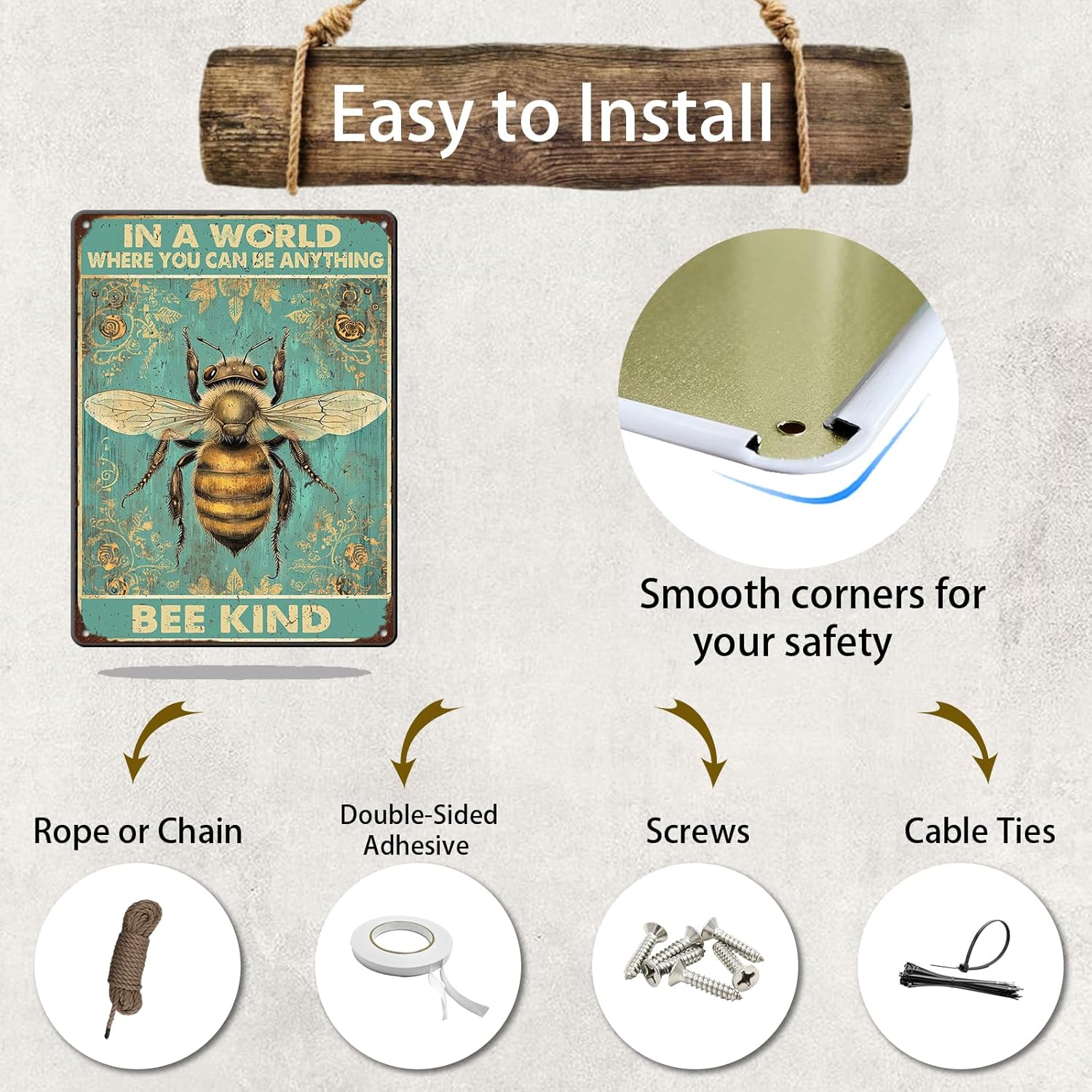 Vintage Metal Signs In A World Where You Can Be Anything Bee Kind Retro Iron Sign For Home Office Kitchen Bar Cafe Garden Farmhouse Wall Decor 12x16 Inch