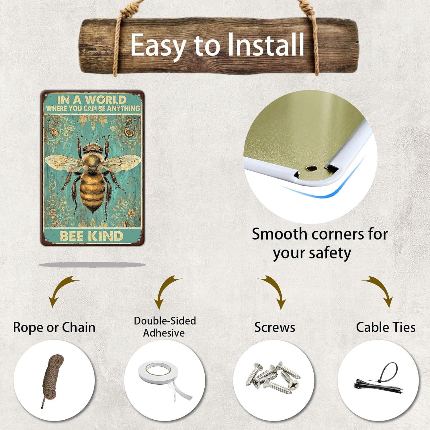 Vintage Metal Signs In A World Where You Can Be Anything Bee Kind Retro Iron Sign For Home Office Kitchen Bar Cafe Garden Farmhouse Wall Decor 12x8 Inch
