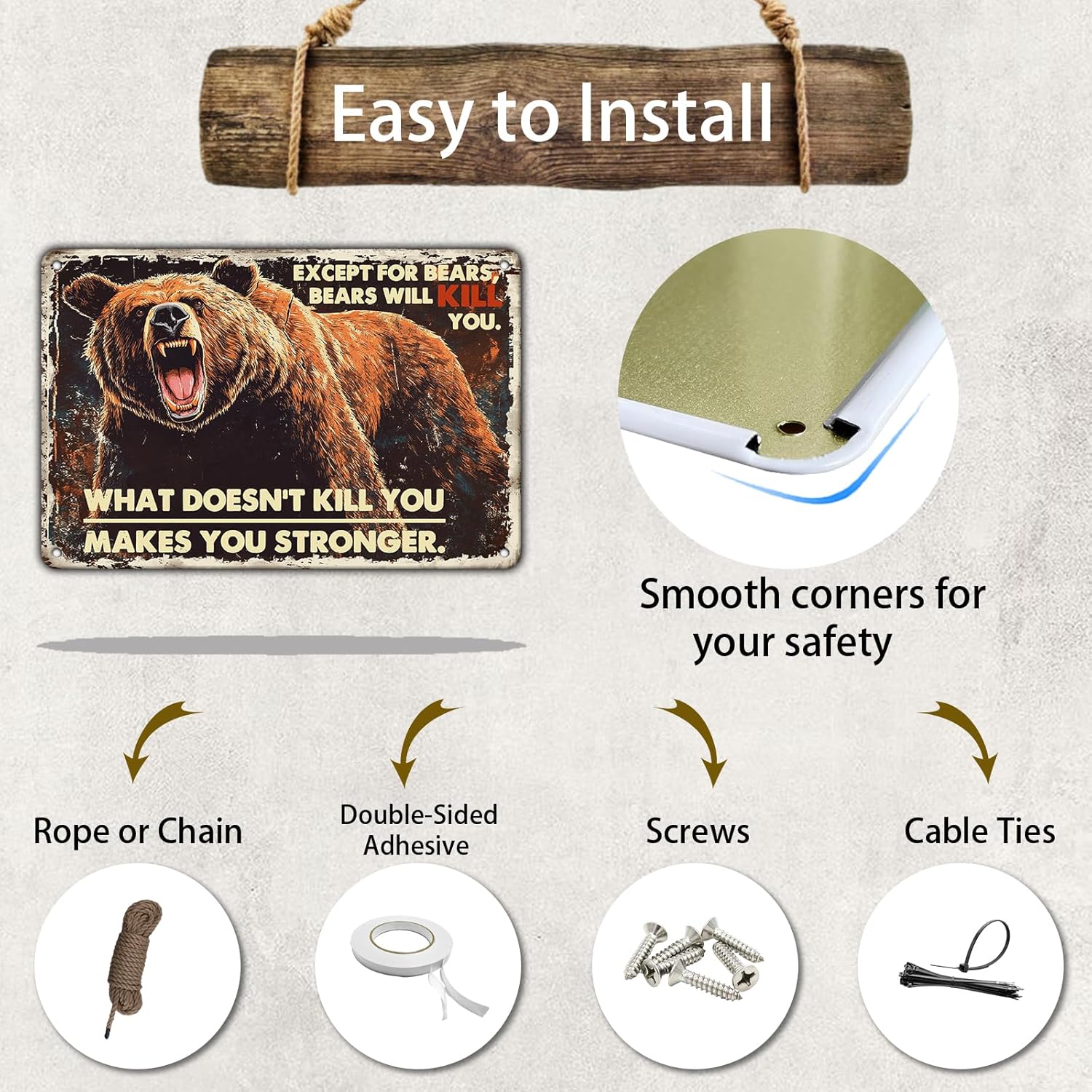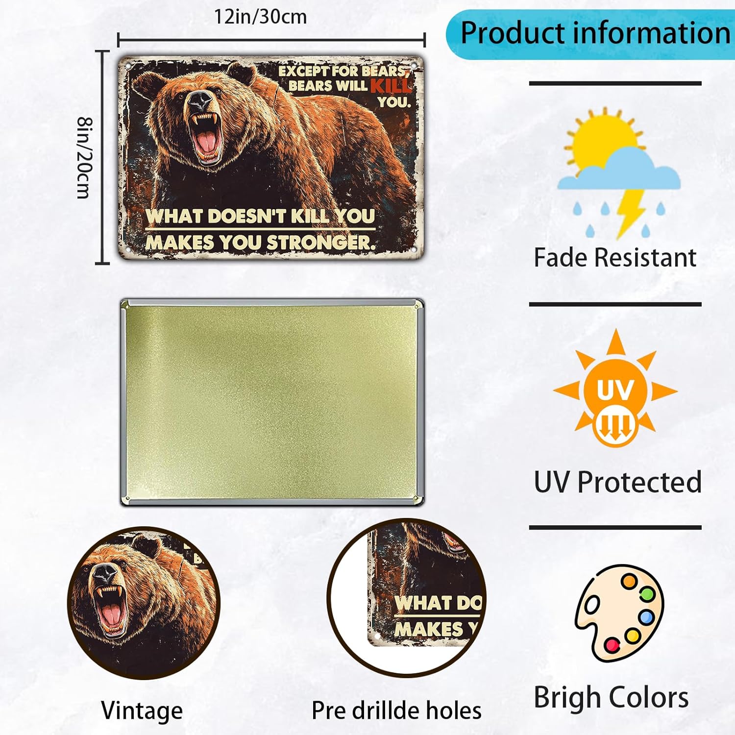 Bears Vintage Tin Metal Iron Sign What Doesn't Kill You Makes You Stronger Except For Bears Bears Will Kill You Wall Decor Gifts For Retro Poster Garage Club Bar Sign 12x8 Inch