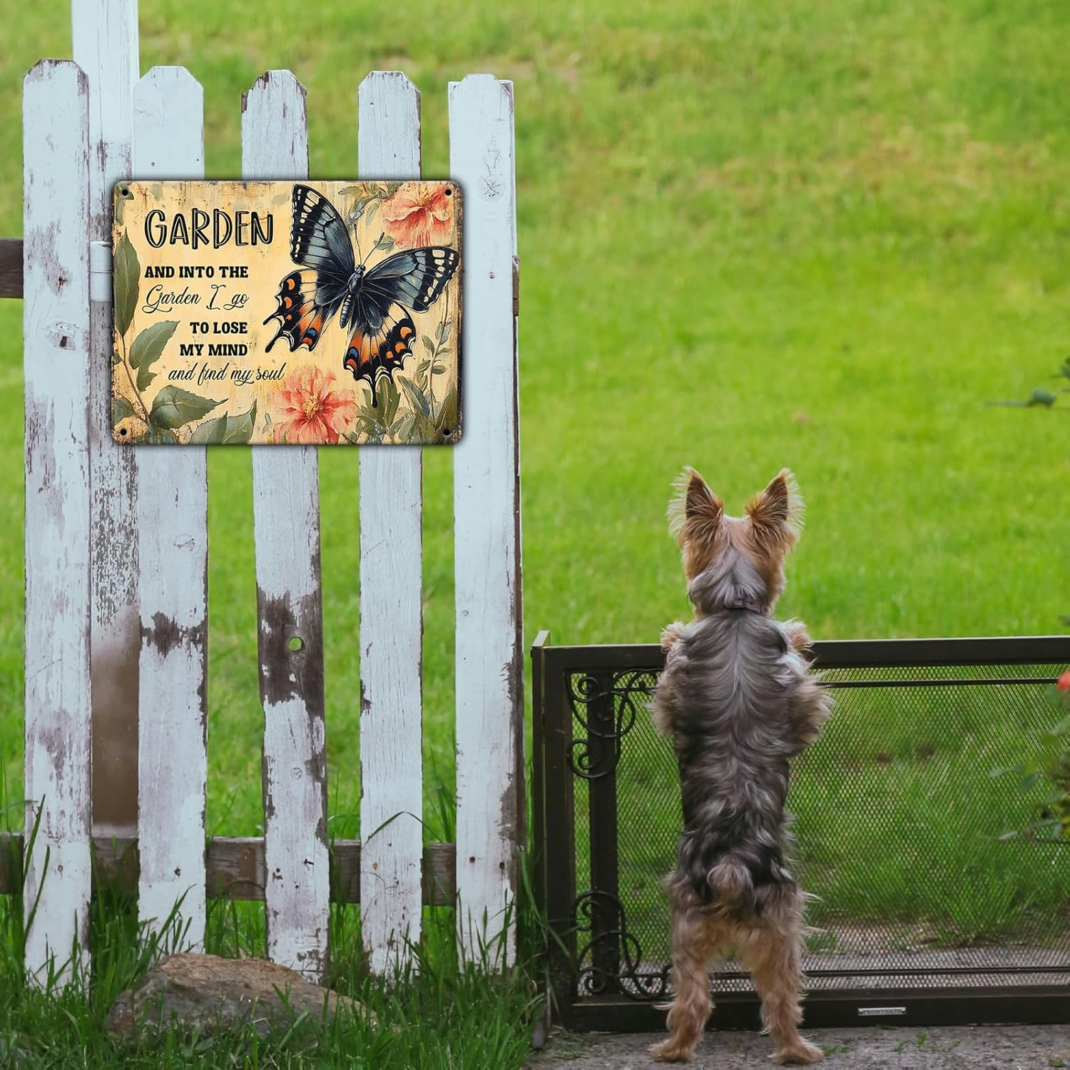 Funny Garden Metal Sign And Into The Garden I Go To Lose My Mind and Find My Soul Butterfly Poster for Farmhouse Home Kitchen 12x16 Inch