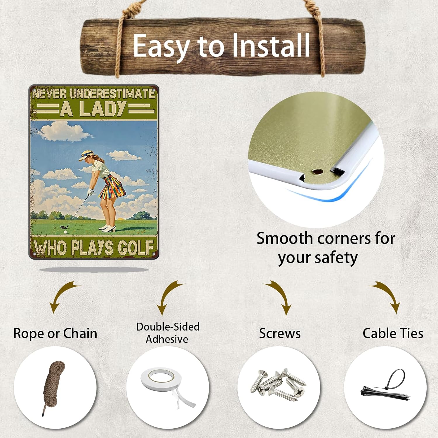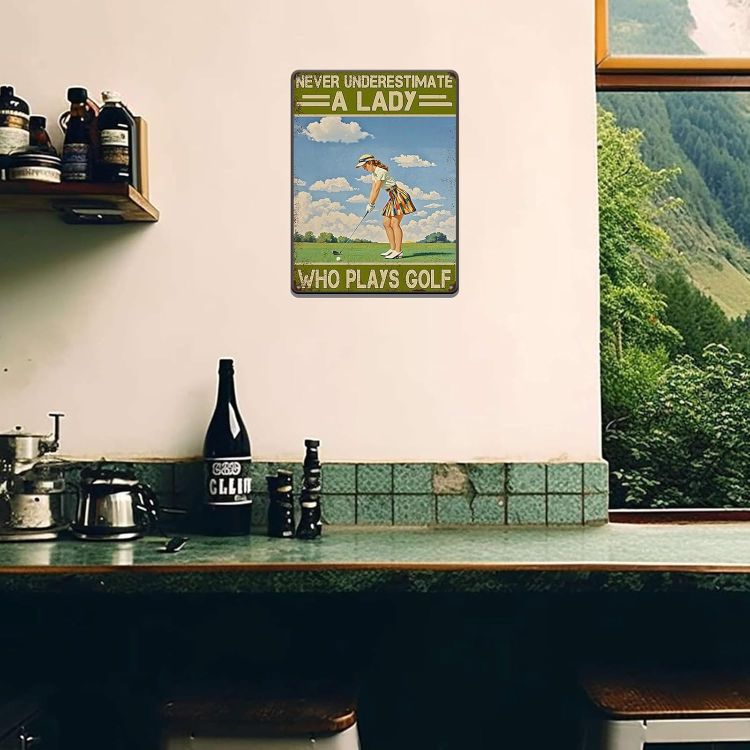 Golf Vintage Tin Sign Metal Sign Never Underestimate A Lady Who Plays Golf Iron Painting Vintage Wall Decoration Poster For Home Club Man Cave Sign 12x16 Inch