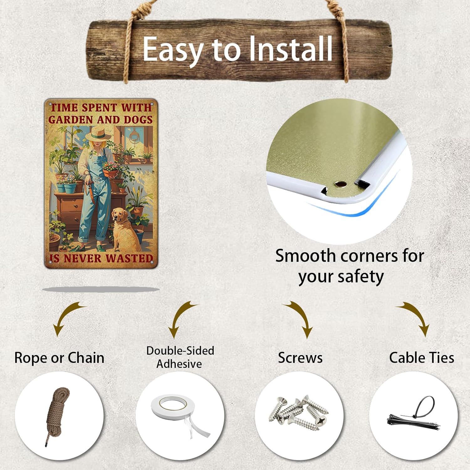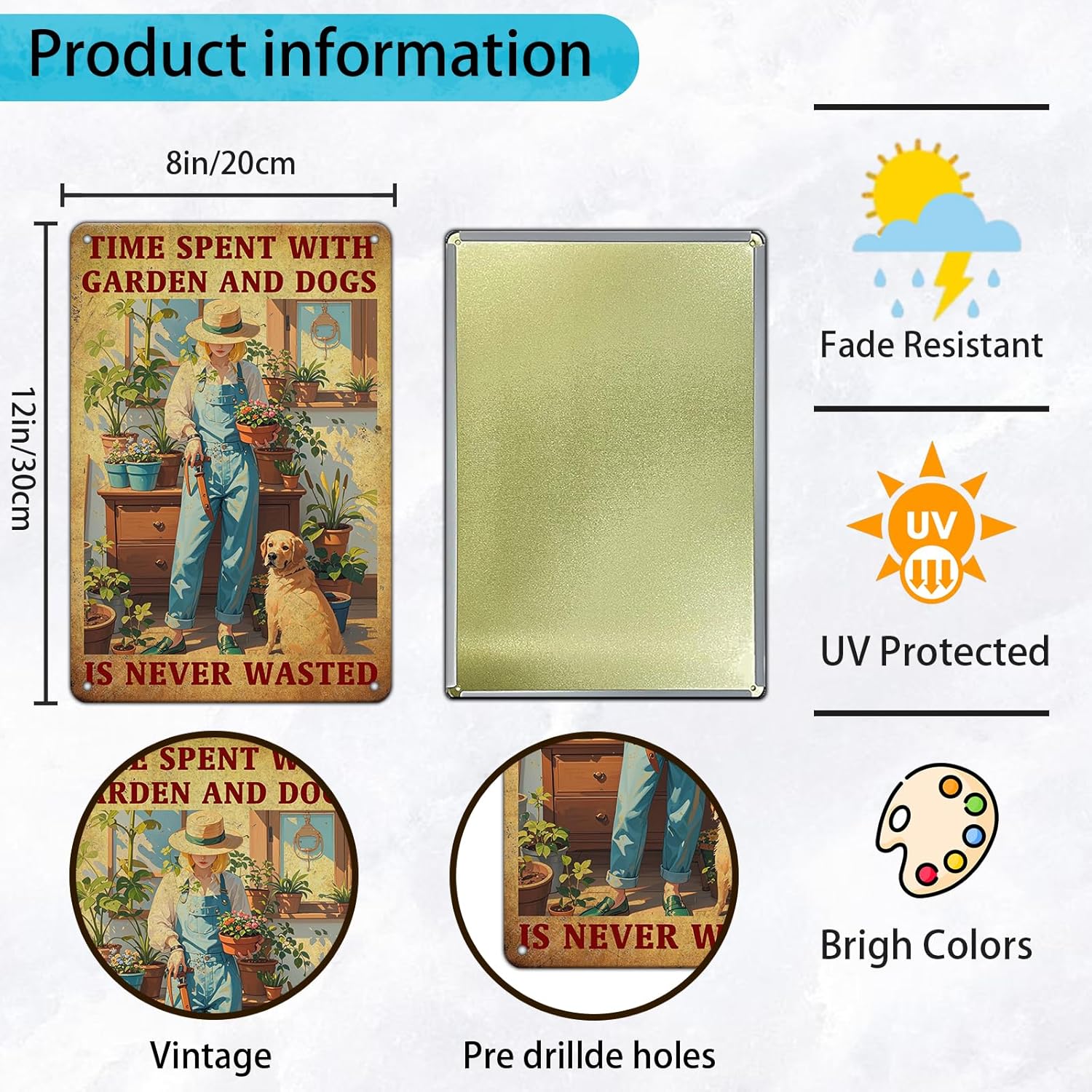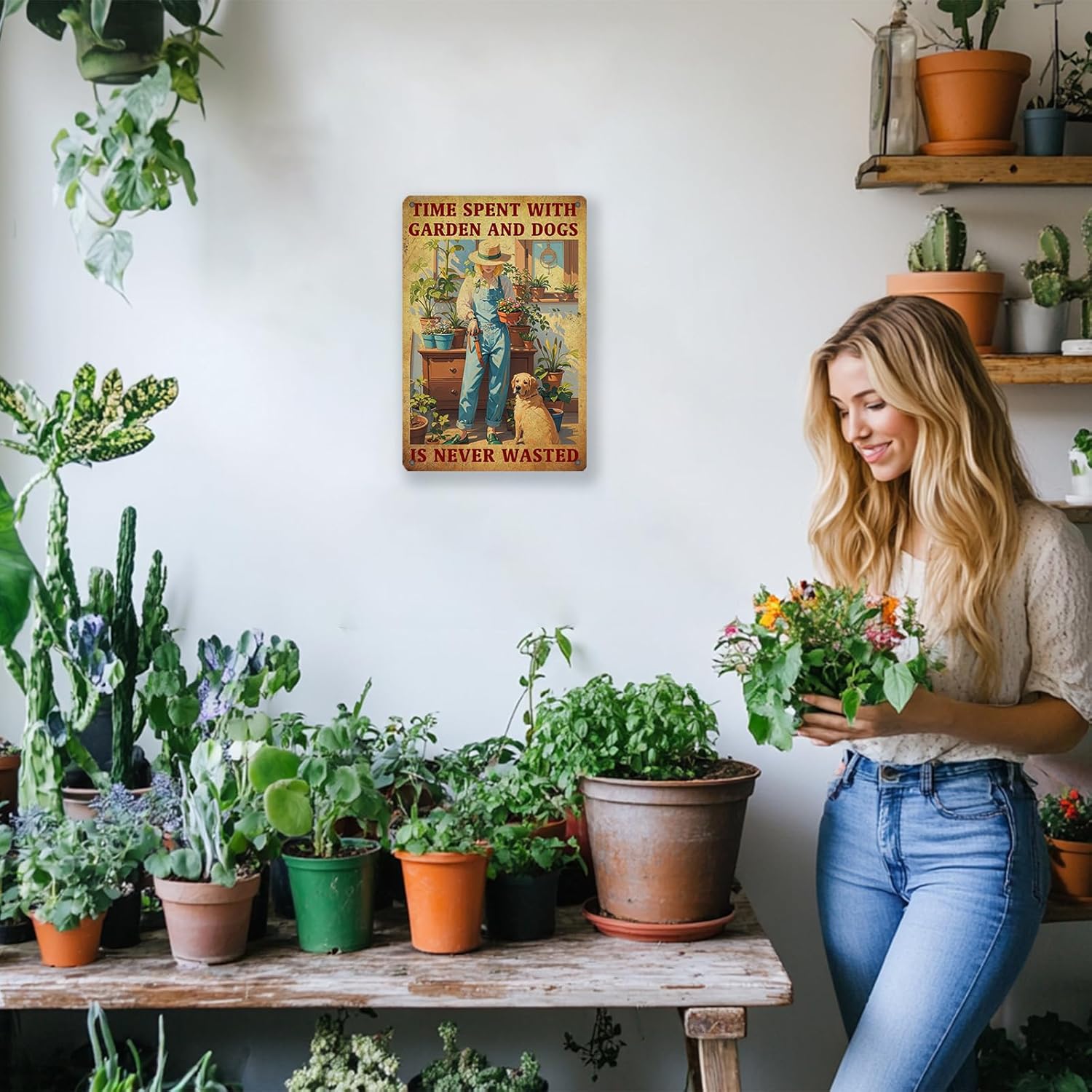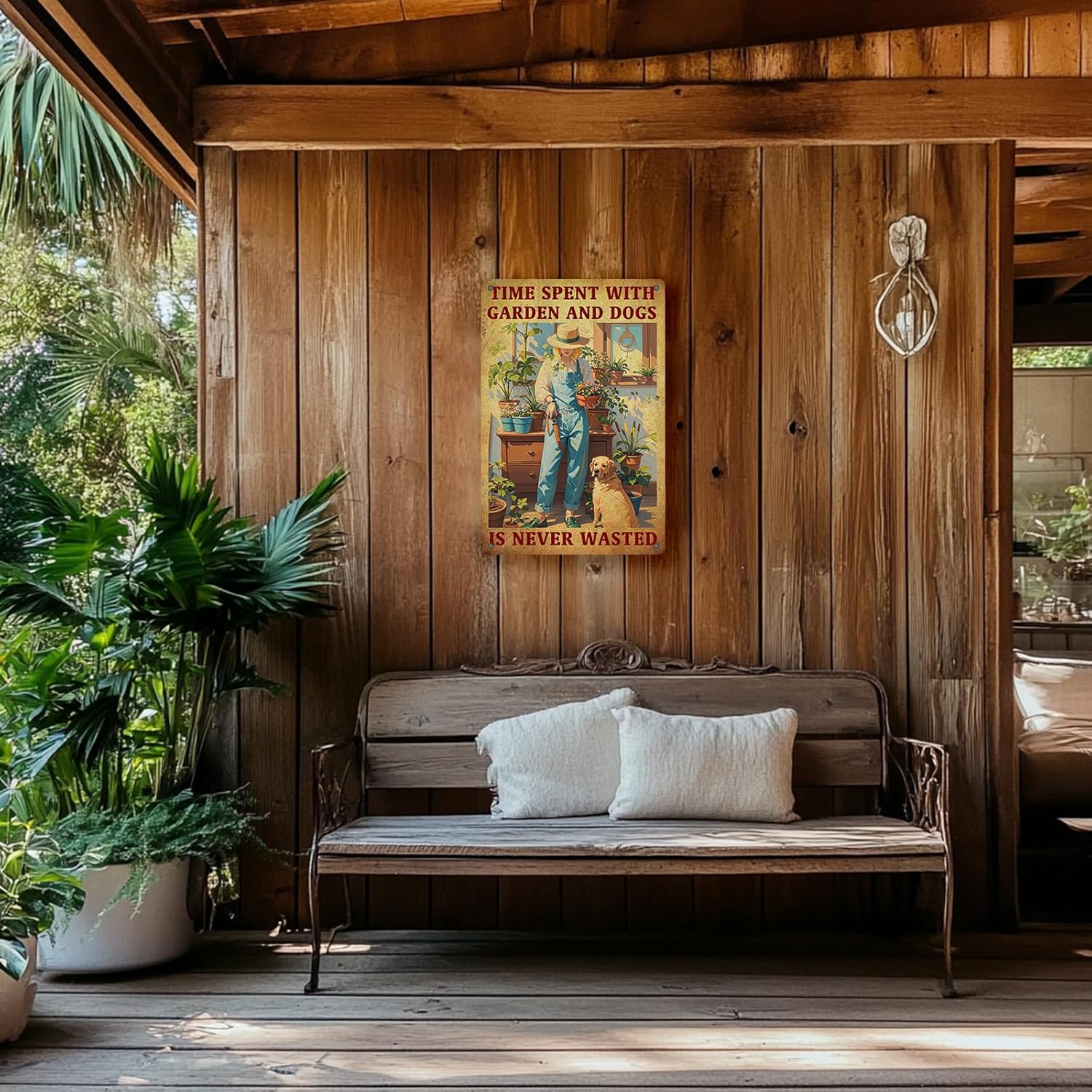 Vintage Garden Time Spent with Garden and Dogs is Never Wasted Metal Tin Sign 8x12 Inch Home Restaurant Wall Decor
