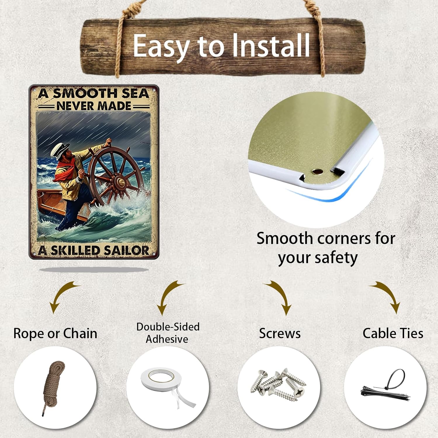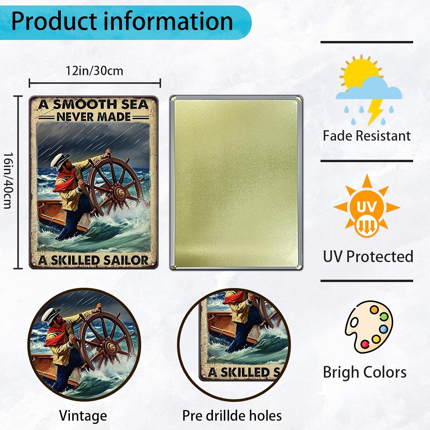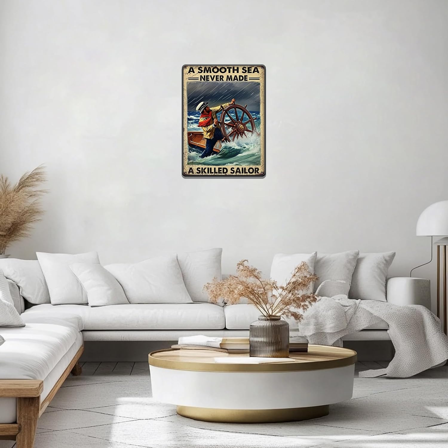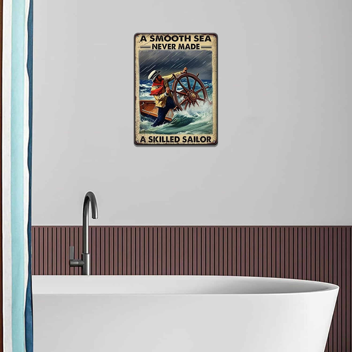 Vintage Tin Sign Metal Poster Plaque A Smooth Sea Never Made A Skilled Sailor Sailing Ship Poster Metal Sign Iron Painting Retro Wall Decor for Home Hotel Cafes Sign Gift 12x16 Inch