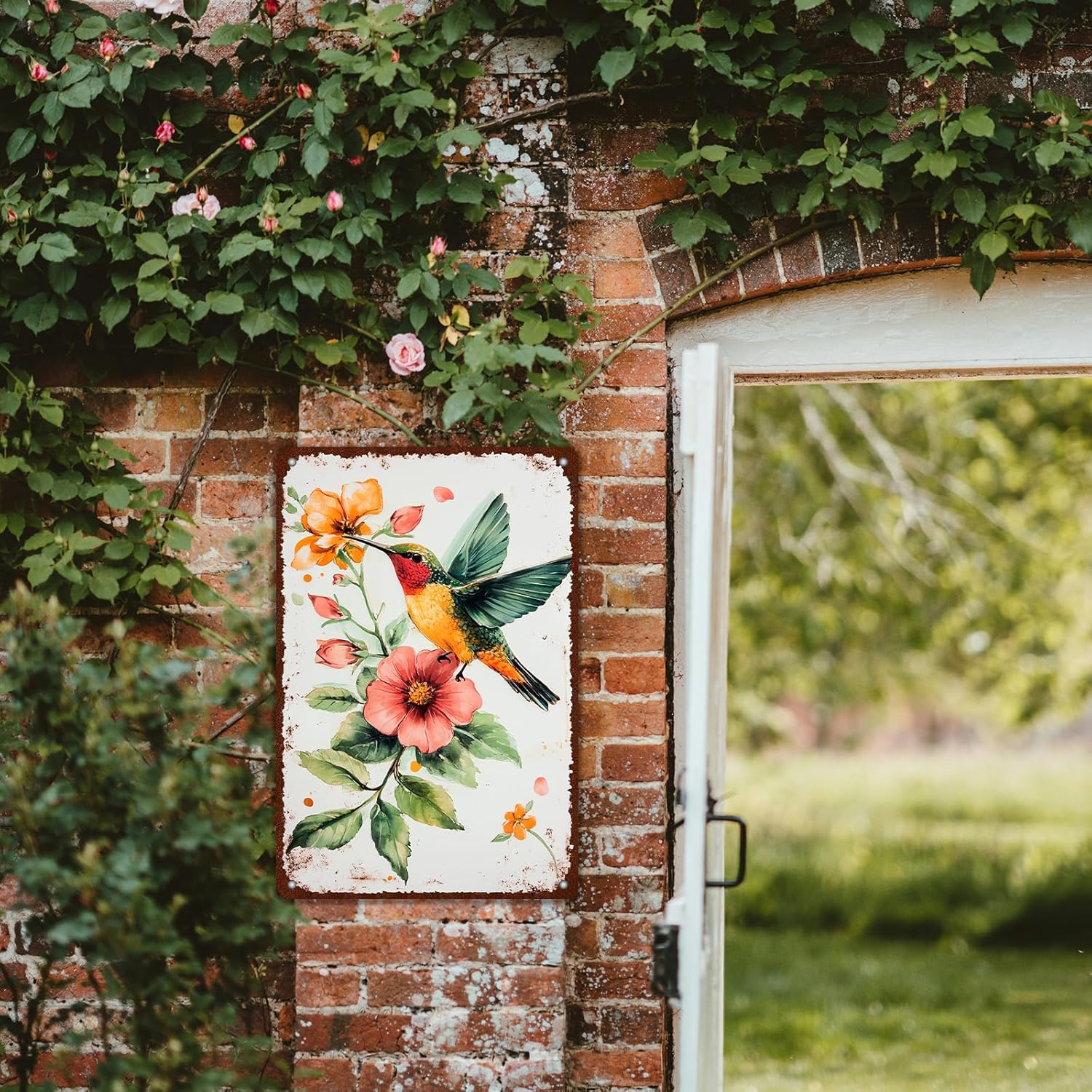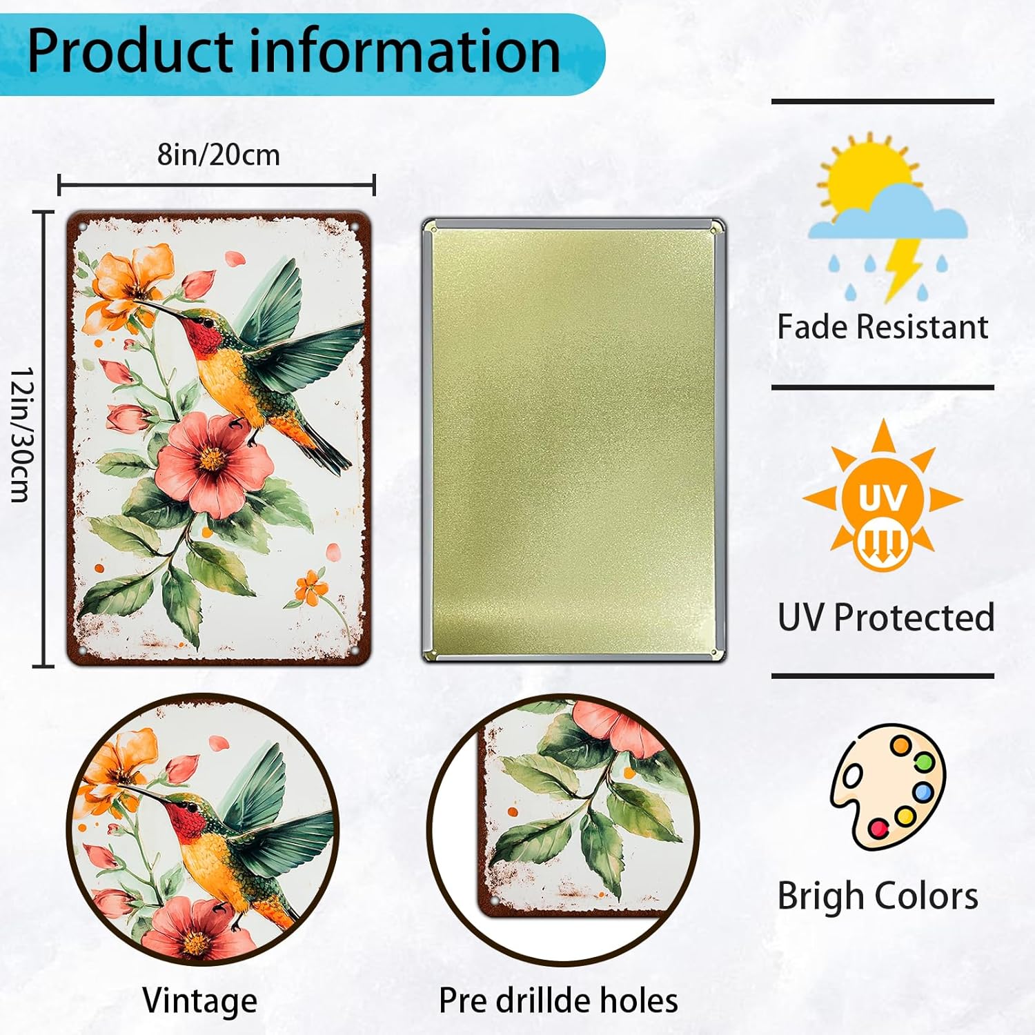 Anique Metal Tin Sign Hummingbird Watercolor Colorful Bird Metal Sign Hummingbird Art Decor Hummingbird Paradise Wall Sign 8x12 Inch
