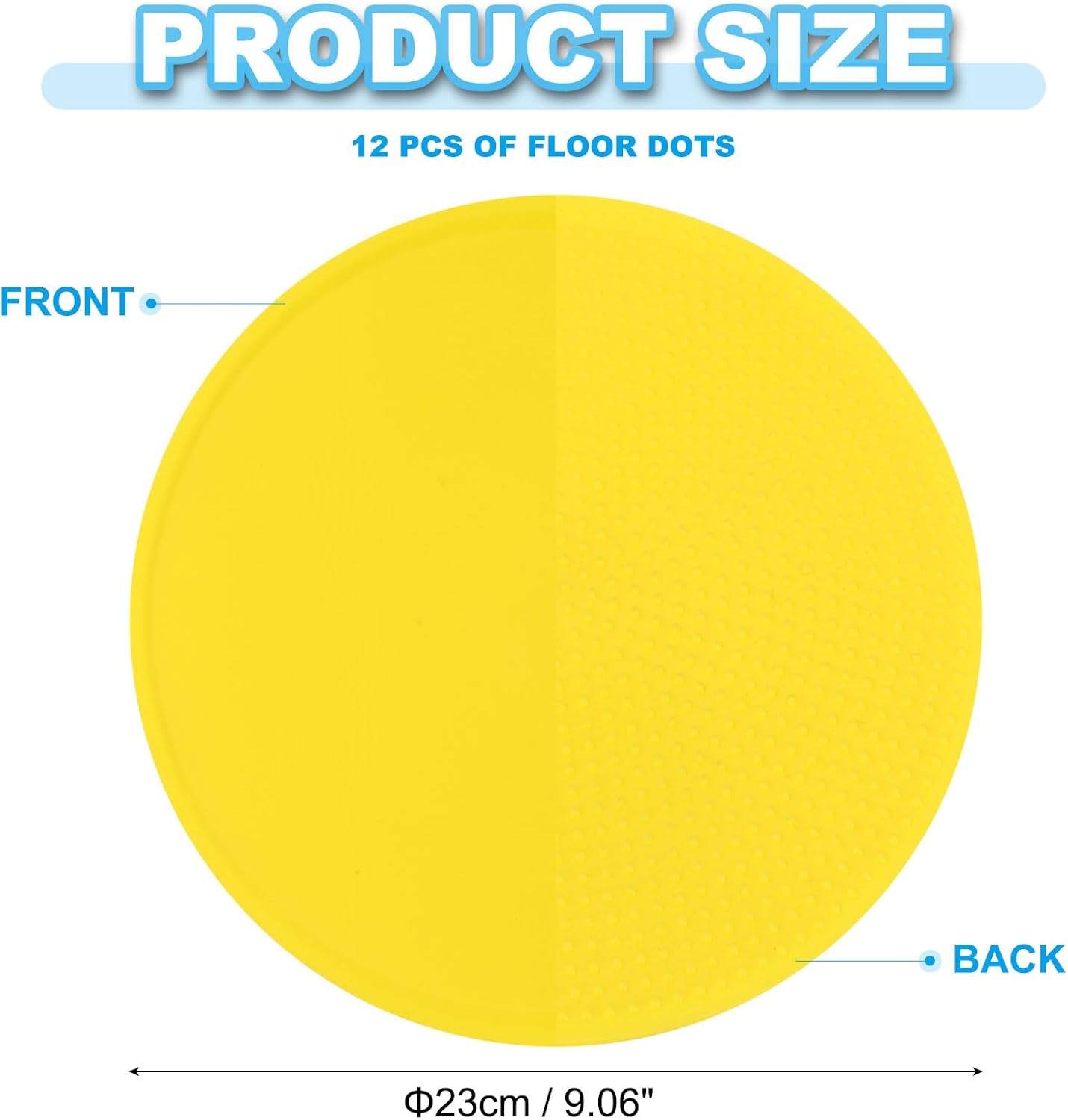 - Material: TPE; Color: Yellow; Diameter: 23cm / 9.06inch; Packing List: 12pcs of floor dots, 1 pcs of storage bag